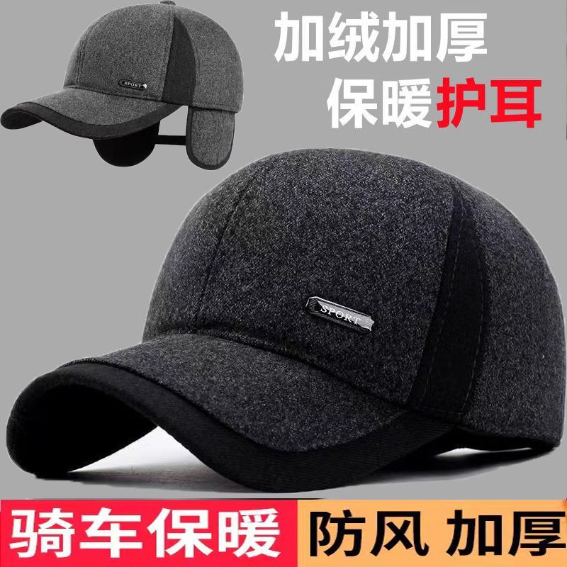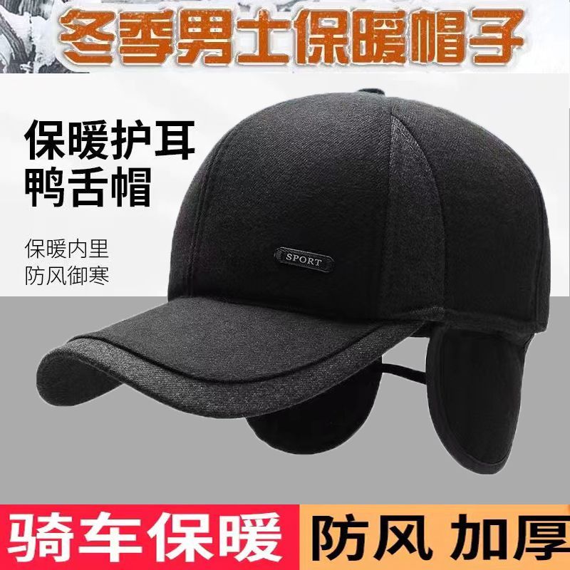男士帽子冬季中老年棒球帽加厚老人鸭舌帽秋冬天老头护耳护头加绒