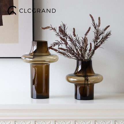 轻奢中古玻璃花瓶摆件高级感客厅桌面插花装饰花器酒店样板间摆设