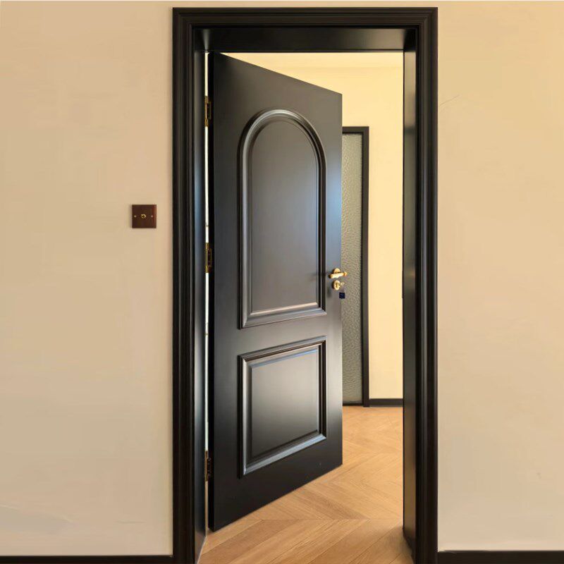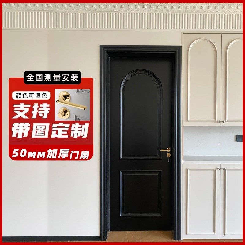 法式复古卧室门实木门中古风烤漆门黑色室内门房间门木门装门