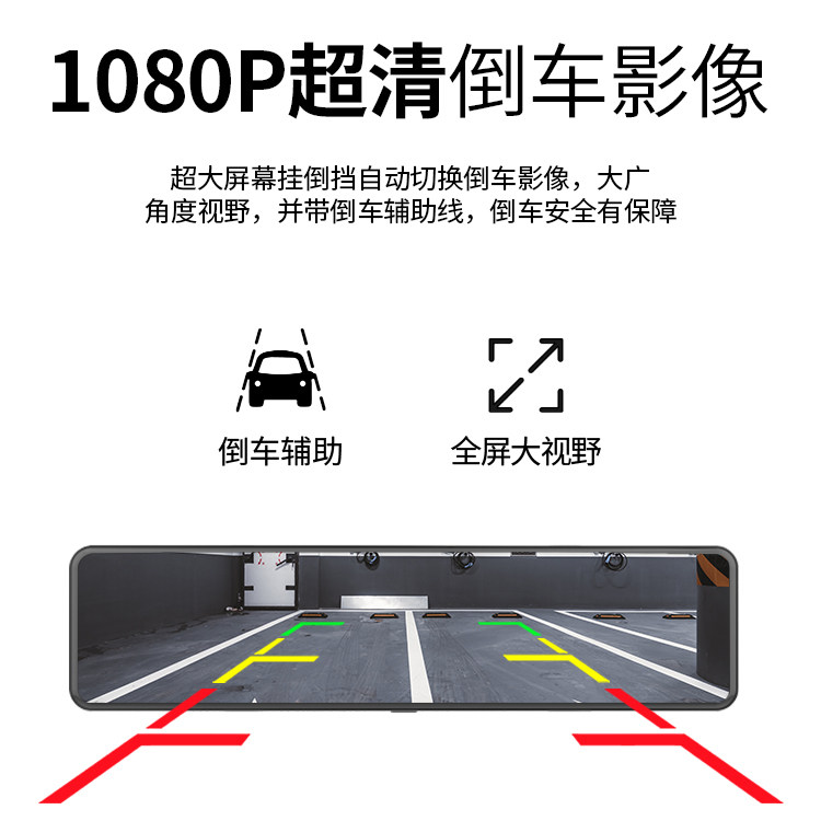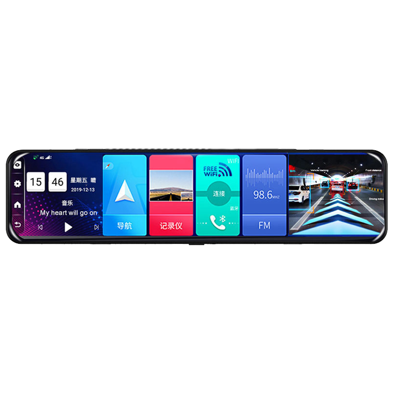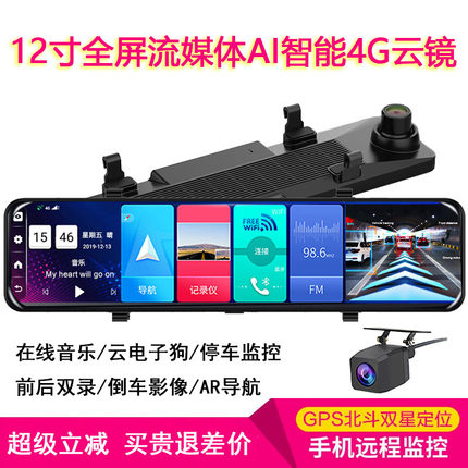 新款12寸全屏行车记录仪前后双录高清流媒体后视镜导航倒车一体机