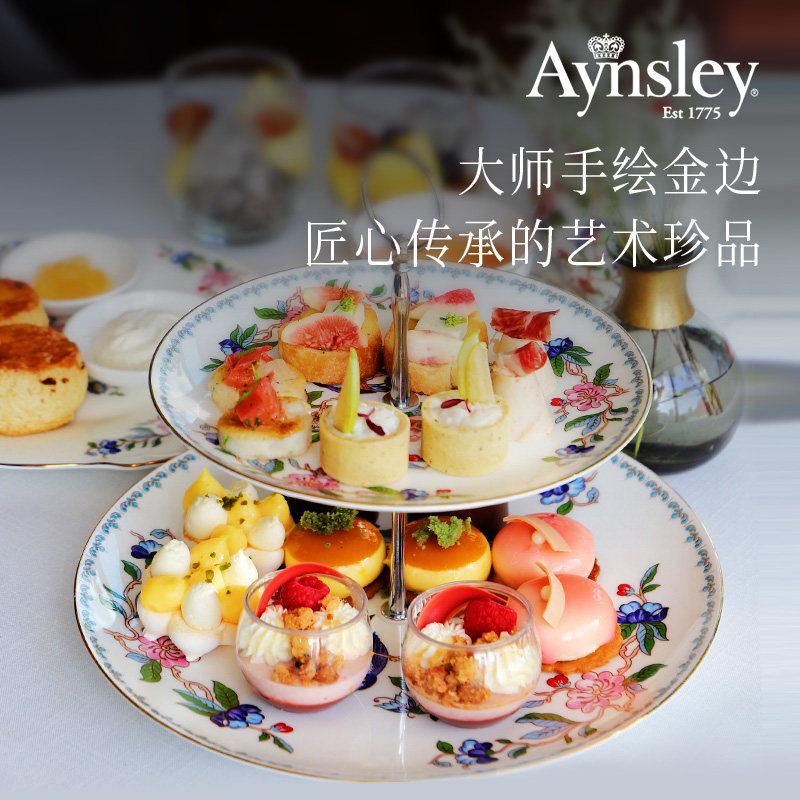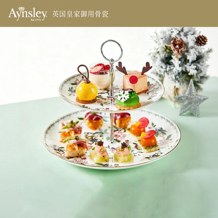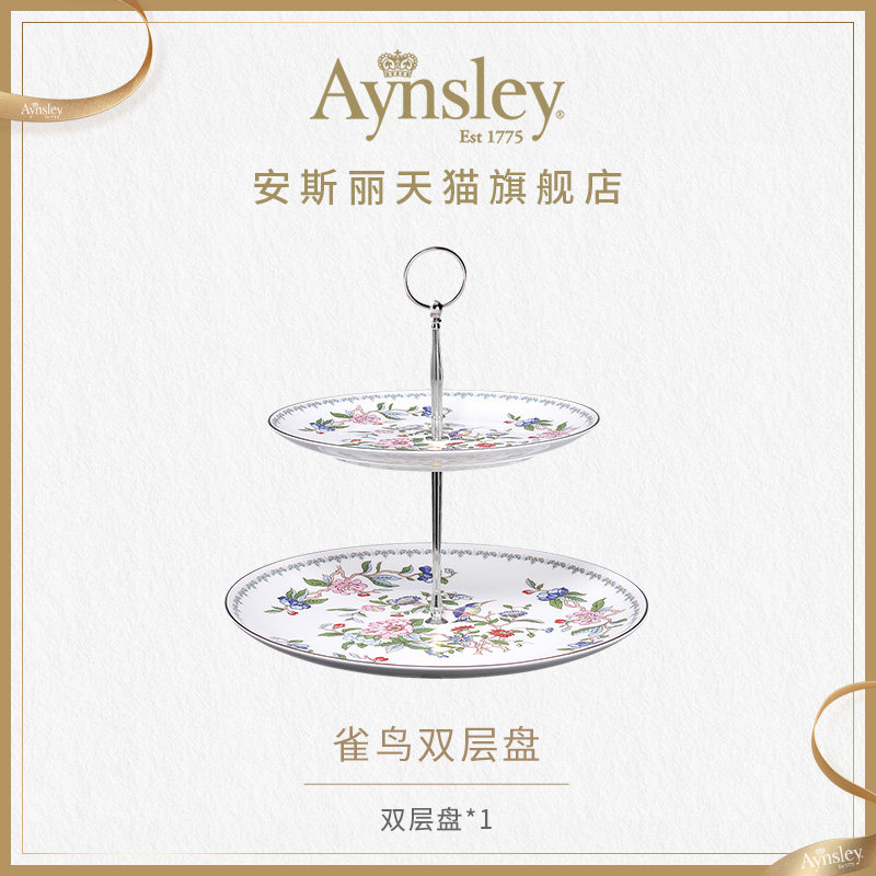 英国Aynsley安斯丽雀鸟双层甜品台家用骨瓷水果盘点心蛋糕零食架