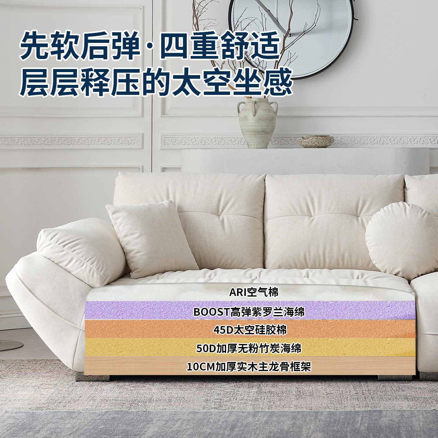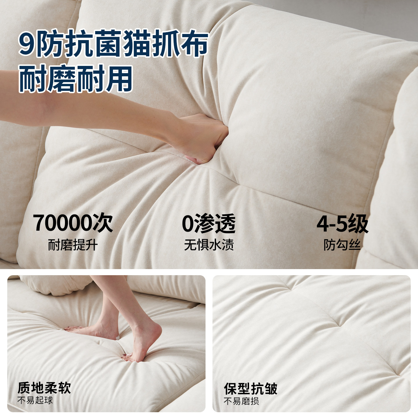 欧派简约现代布艺奶油风小户型猫抓布客厅家用棉麻可调节云朵沙发