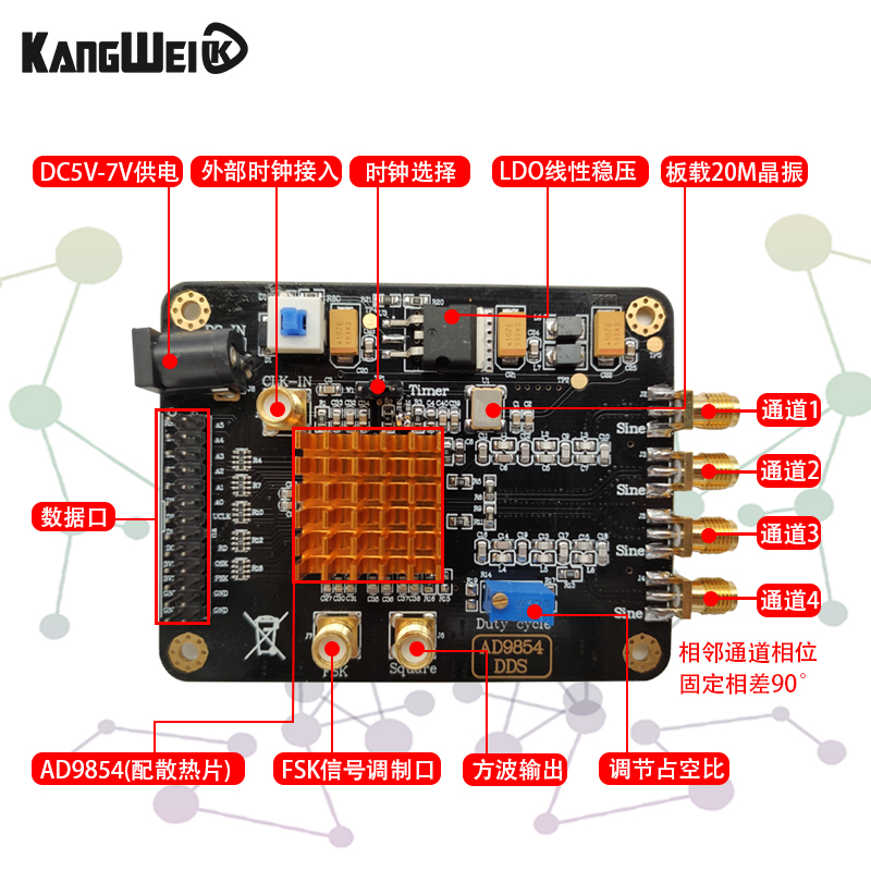 AD9854 高速DDS信号发生器模块 高频信号源 正弦波方波信号发生器