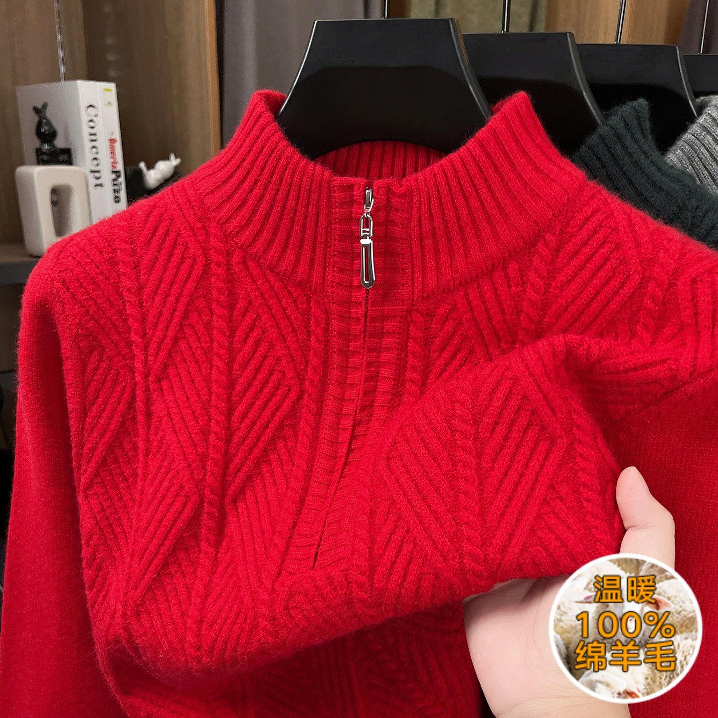起球包退!男士加厚半高拉链毛衣