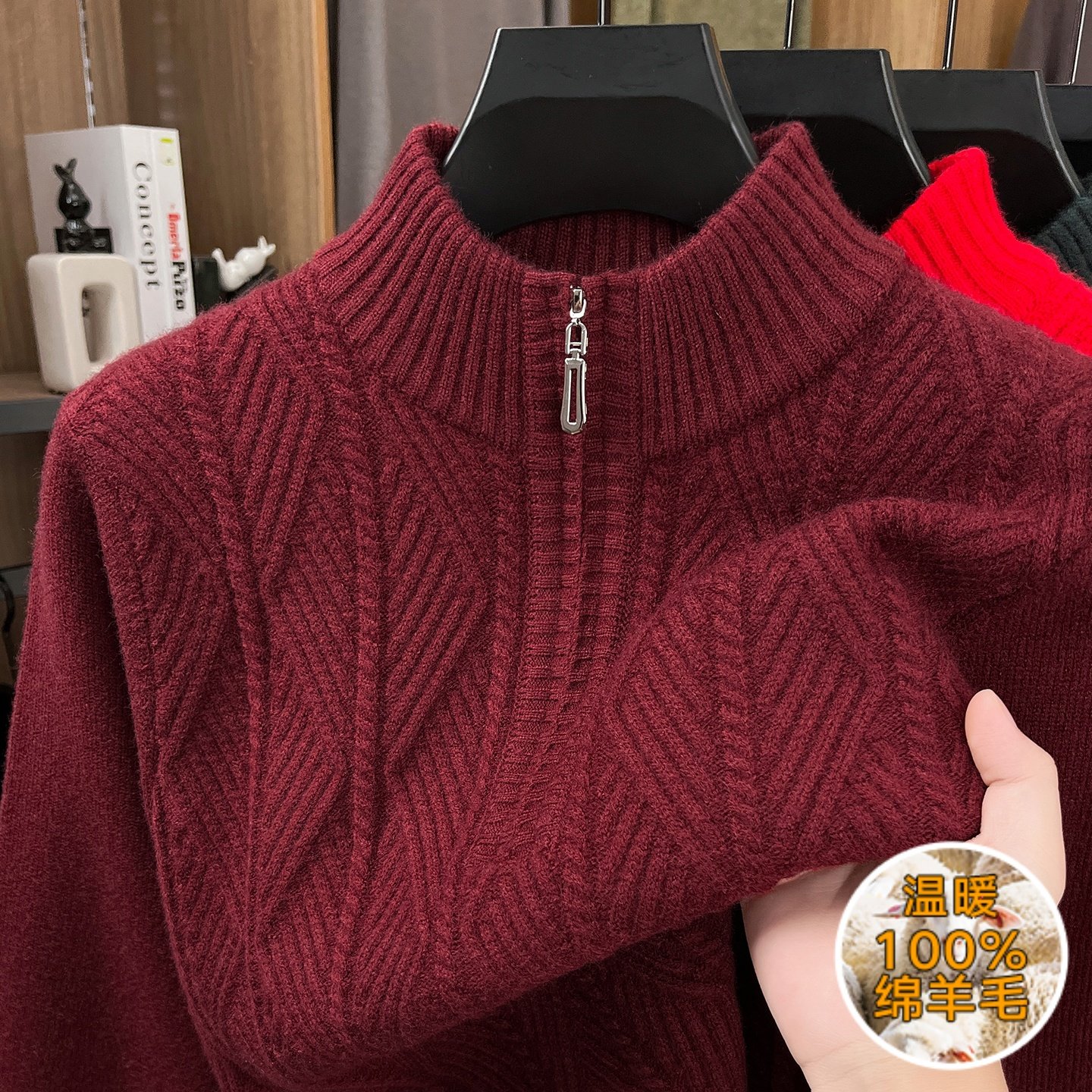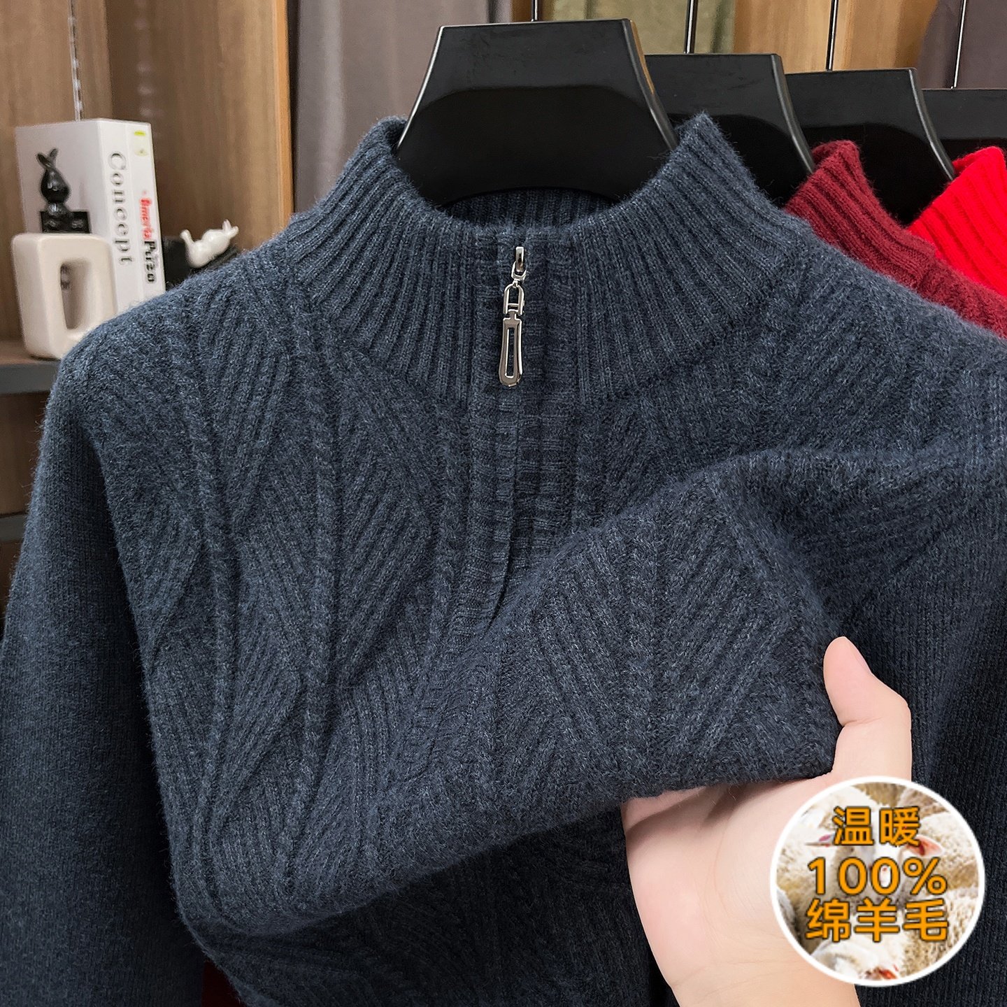 鄂尔多斯市产男士半高拉链加厚针织衫保暖毛衣冬季可机洗羊毛衫