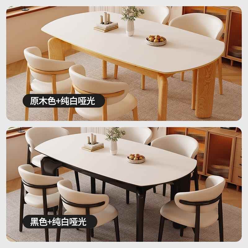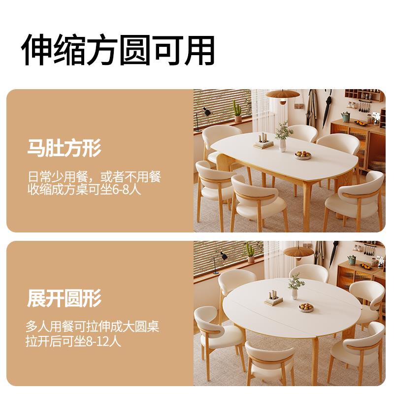 高档东方心实木岩板桌可变圆伸缩奶油餐新风餐桌椅2024款小桌户型