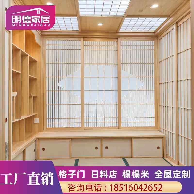 实木日式榻榻米全屋定制整体地台床衣柜一体和室书房格子门定做