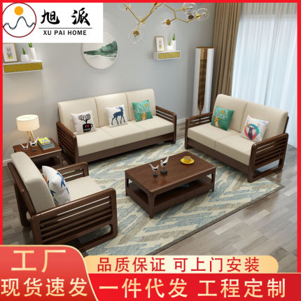 北欧实木沙发组合简约现代小户型客厅三人位原木风布艺沙发经济型