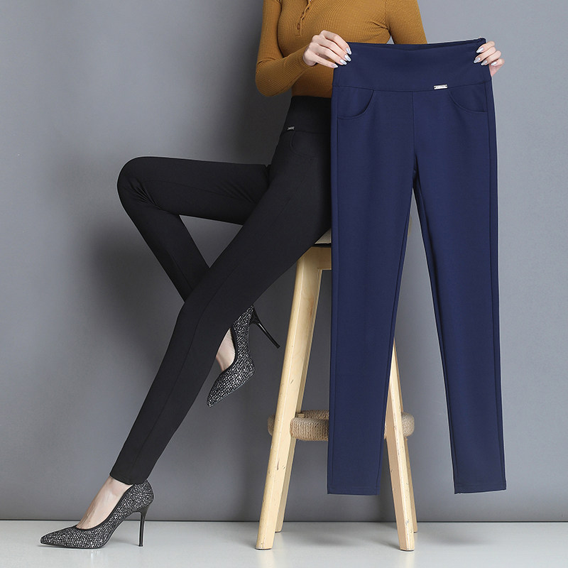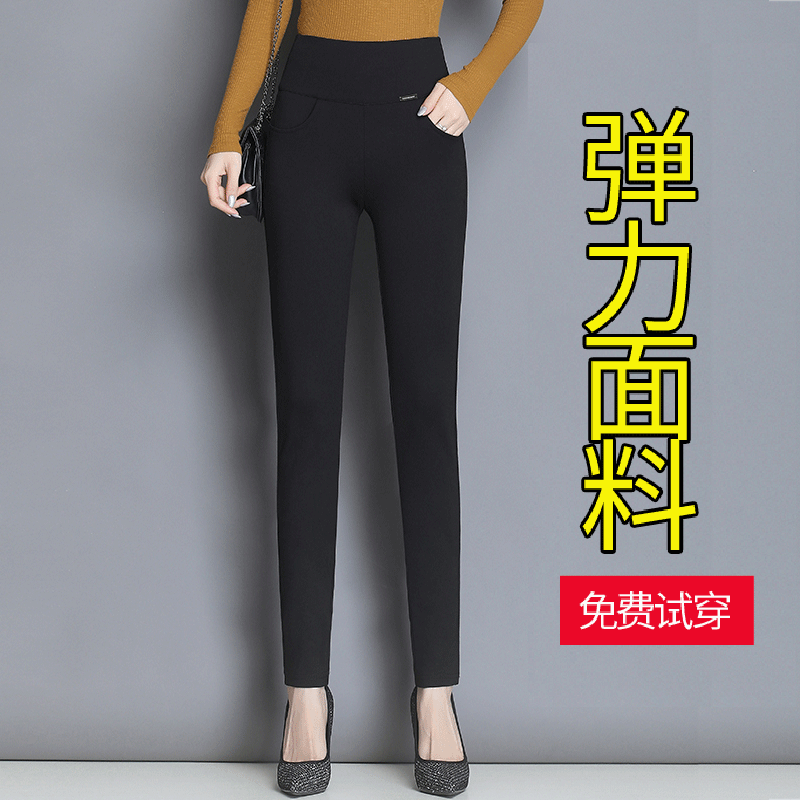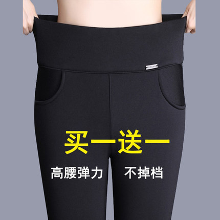 打底裤女秋冬外穿九分高腰中年妈妈大码显瘦黑色气质经典小脚裤女