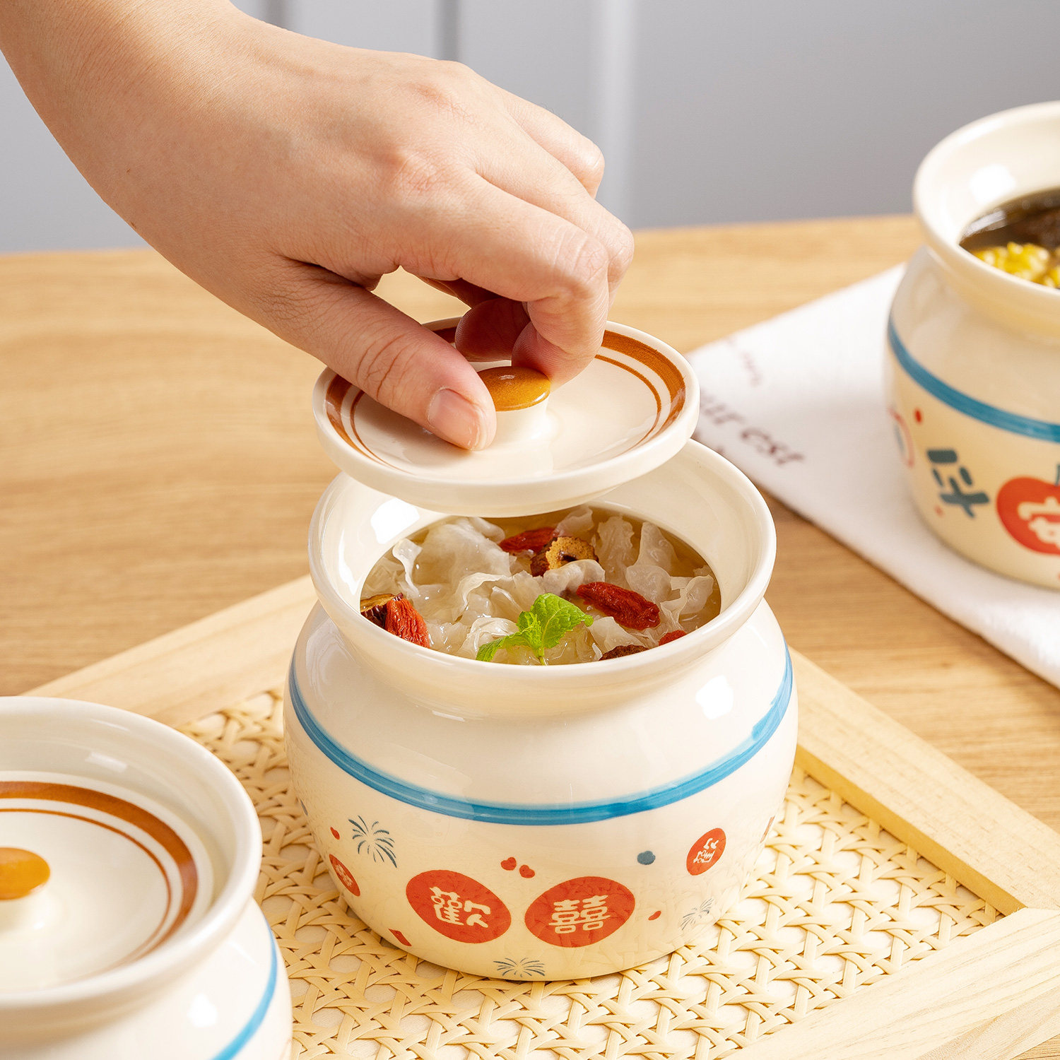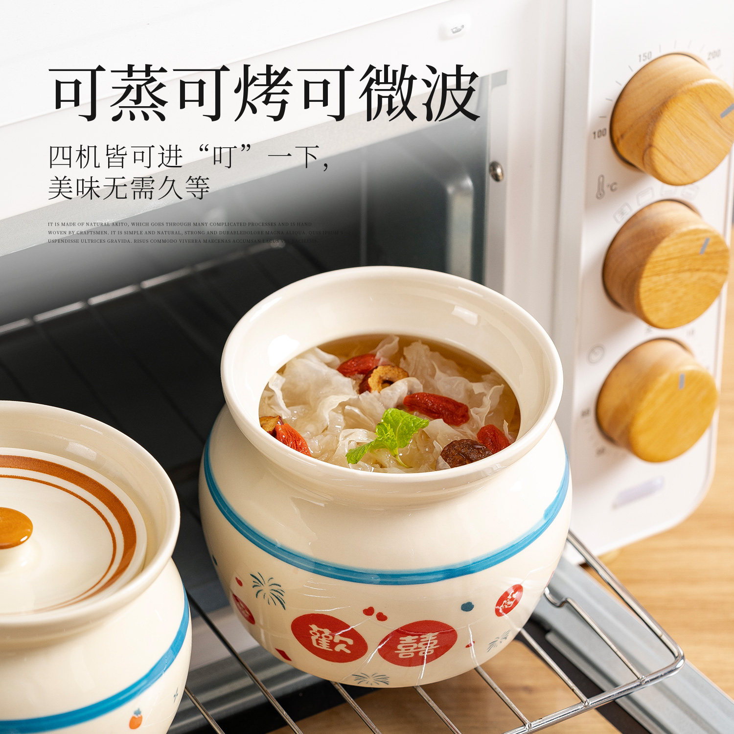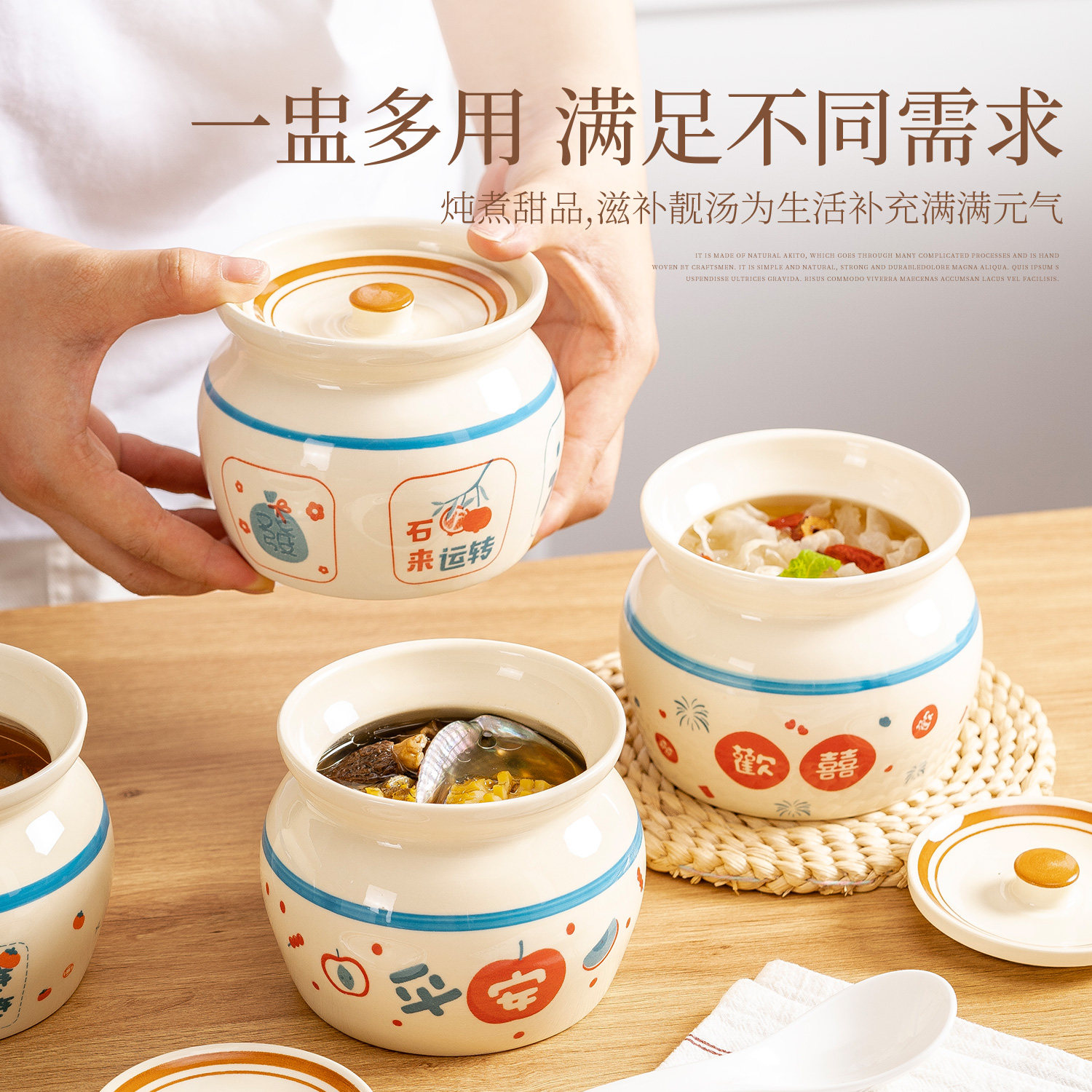 陶瓷瓦罐汤炖盅精致一人份燕窝专用隔水炖罐家用带盖蒸蛋甜品汤盅