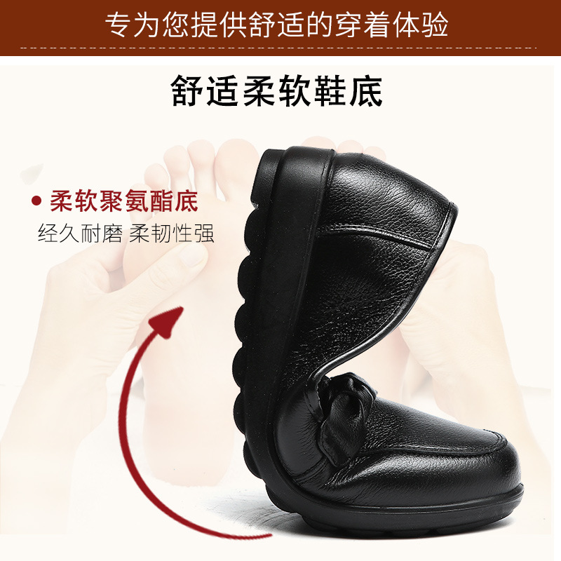 中年妈妈鞋单鞋女真皮软底中老年浅口女鞋防滑平底平跟大码43皮鞋