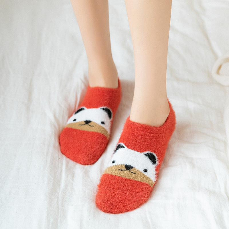 秋冬季加绒加厚成人女地板袜可爱小熊居家保暖男袜套防滑大人鞋袜