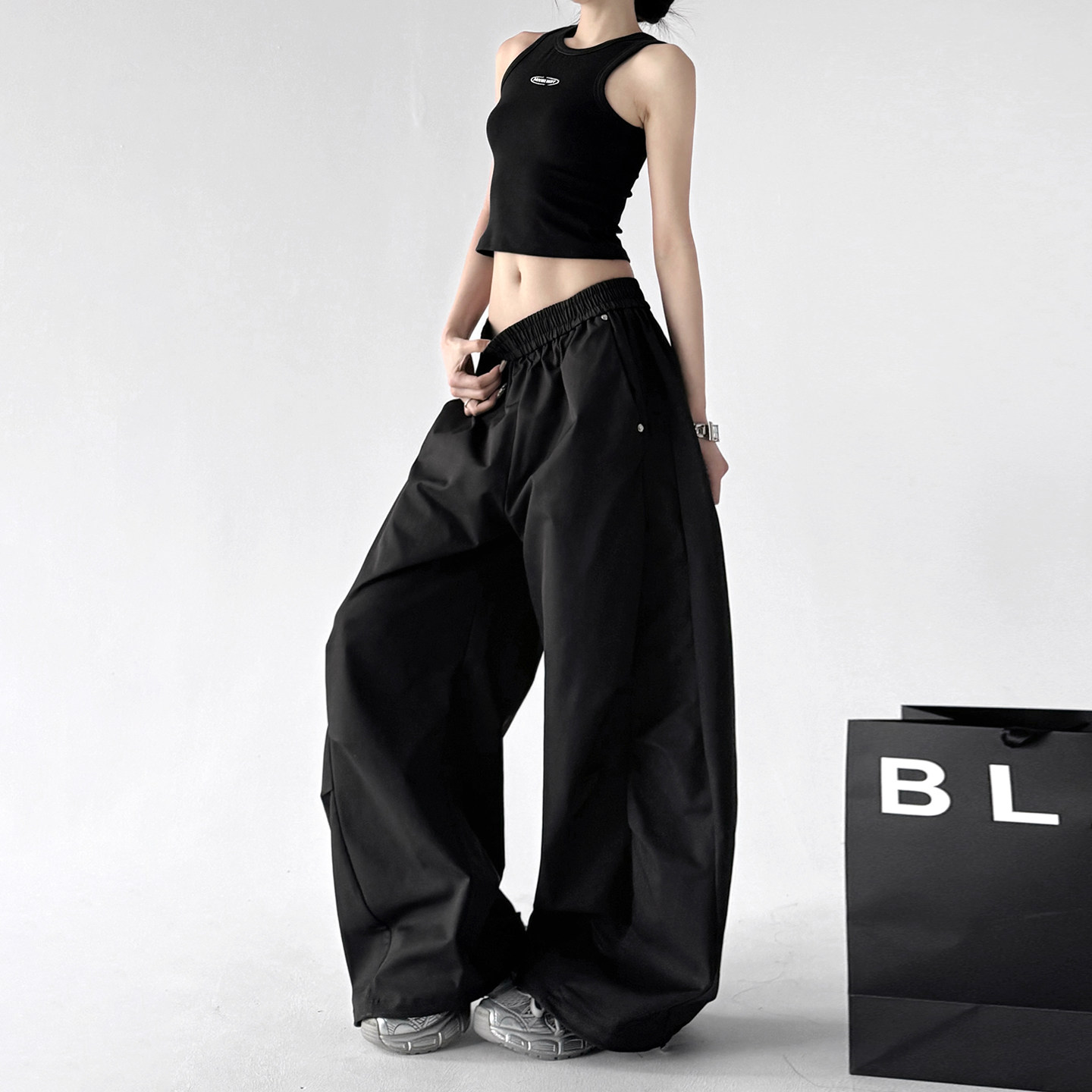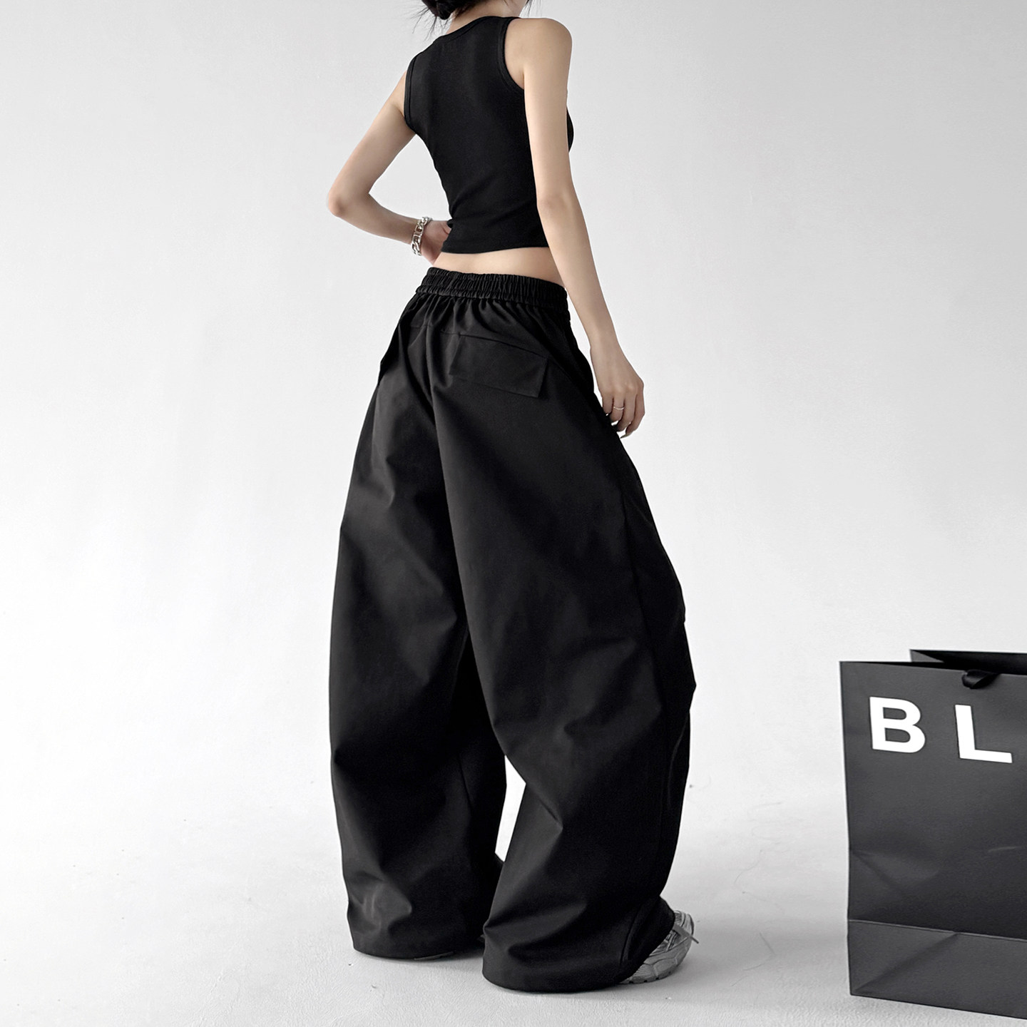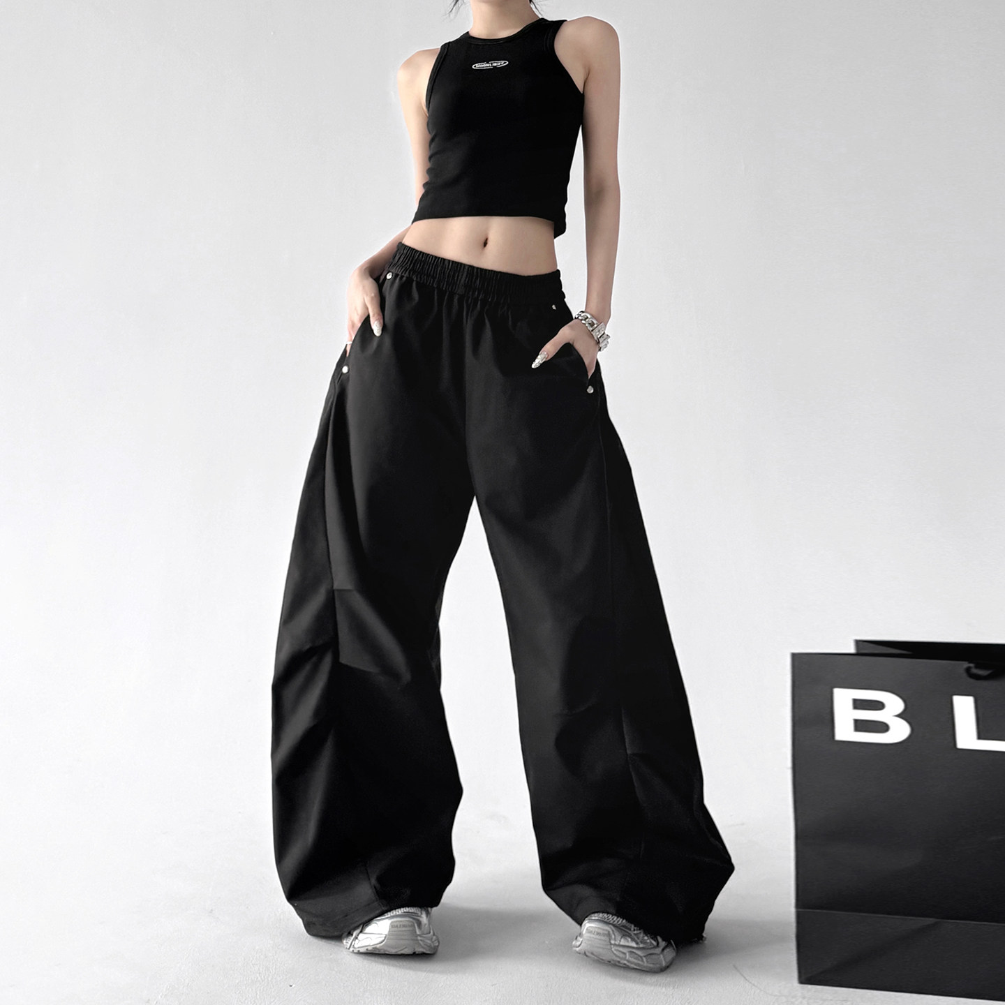 工装裤女2026春装新款超火黑色户外阔腿裤宽松显瘦速干弯刀休闲裤