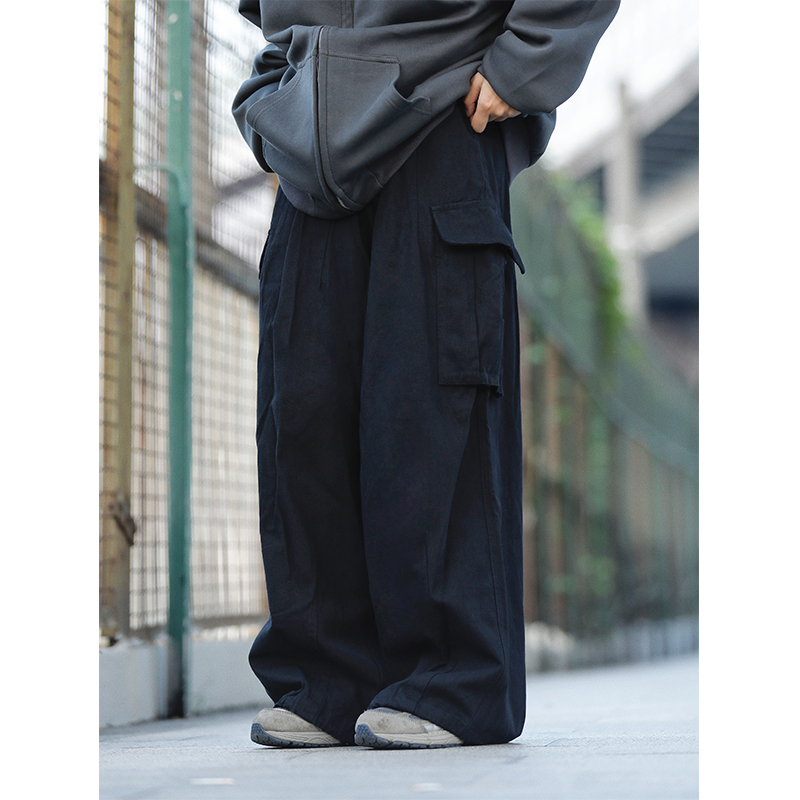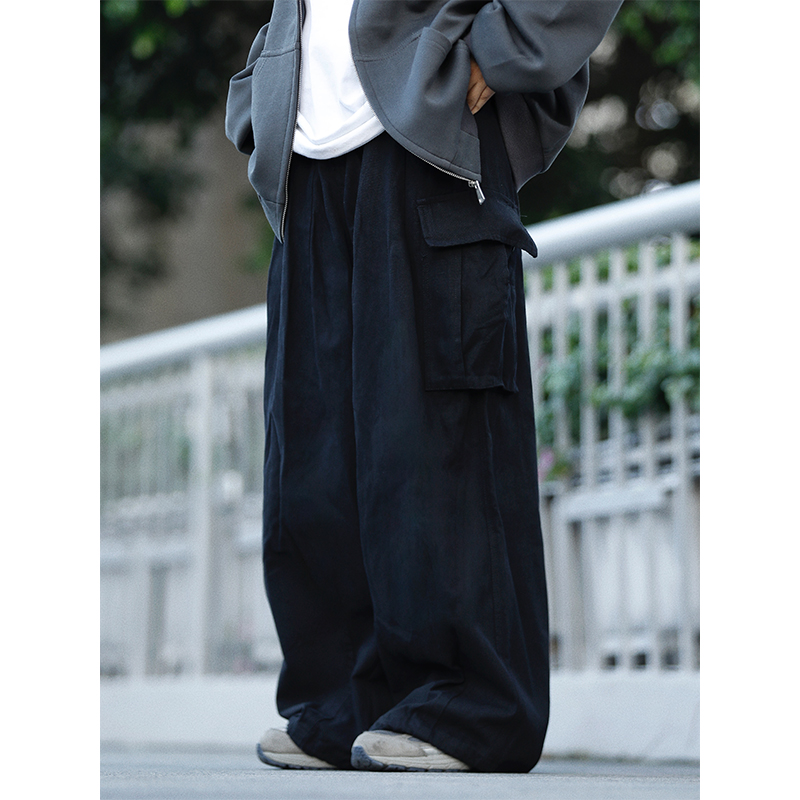 阿于呆日系廓形宽松多口袋工装裤男春秋情侣阔腿直筒休闲长裤女潮