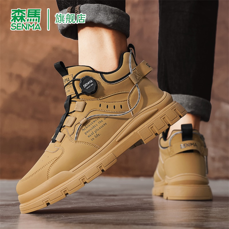 森马马丁靴男款2025秋季新款厚底真皮高帮防水防滑复古休闲工装靴