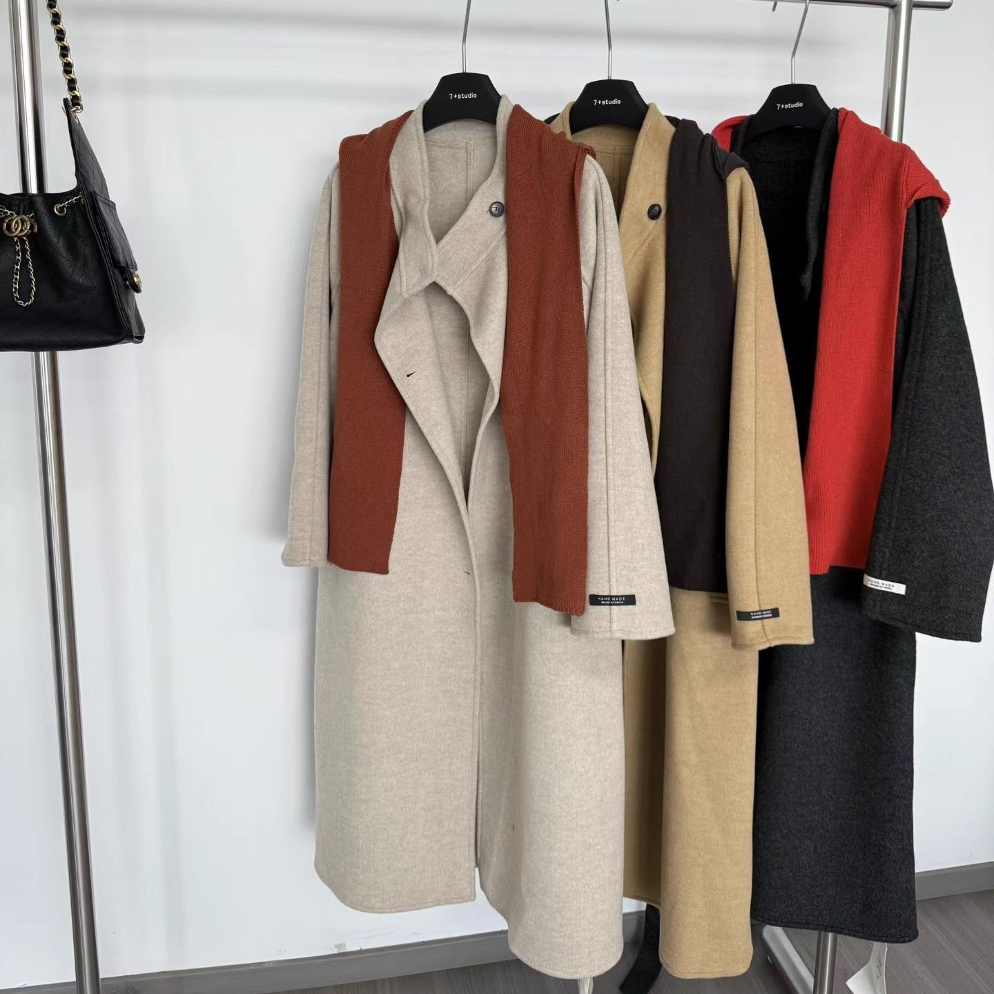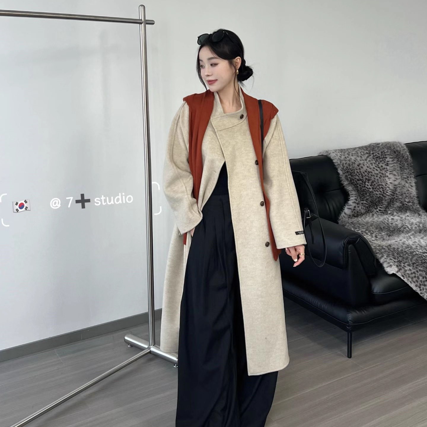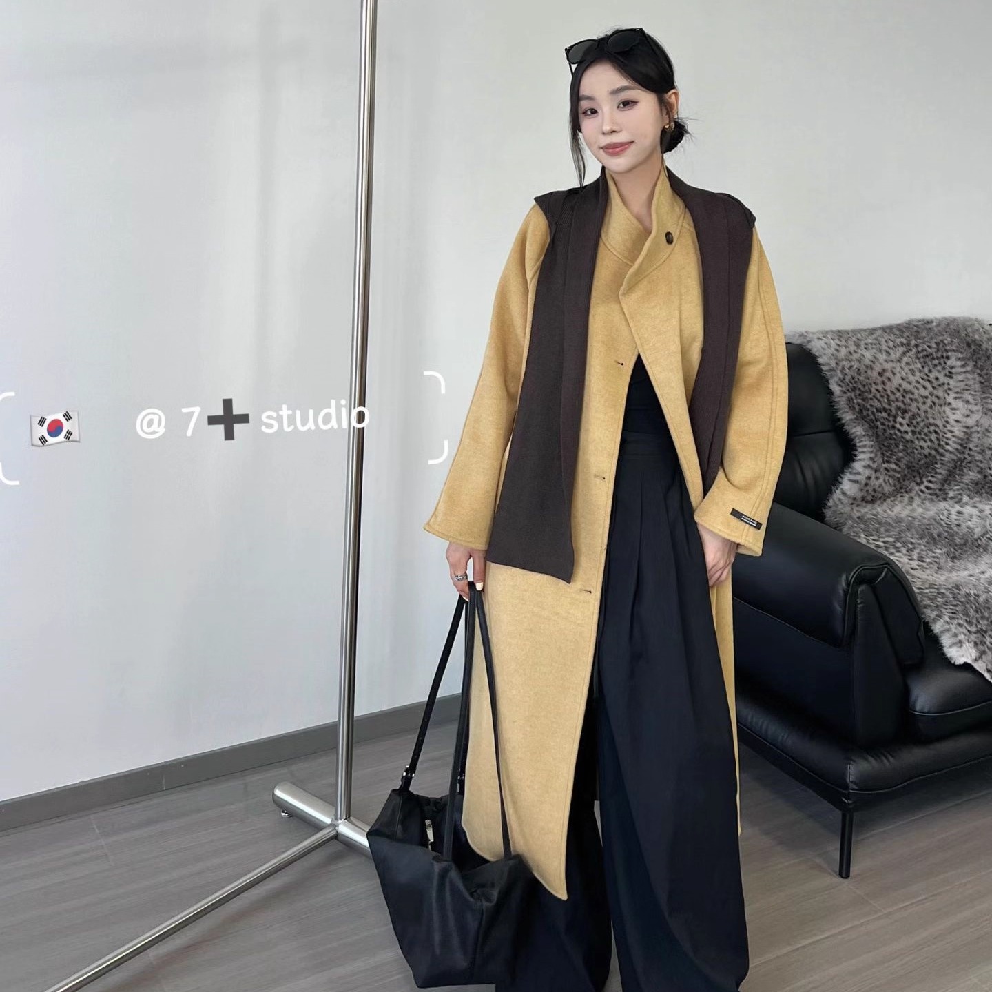 针织连帽披肩高级感双面呢长款大衣女2025秋季韩版宽松氛围感外套