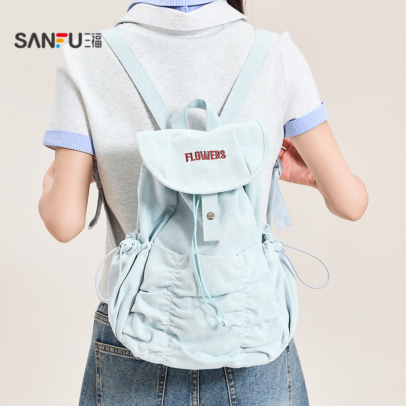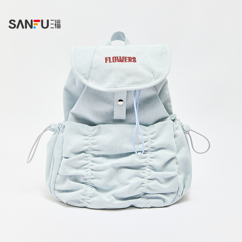 三福双肩包夏季甜心少女休闲抽褶口袋尼龙翻盖背包女包500694