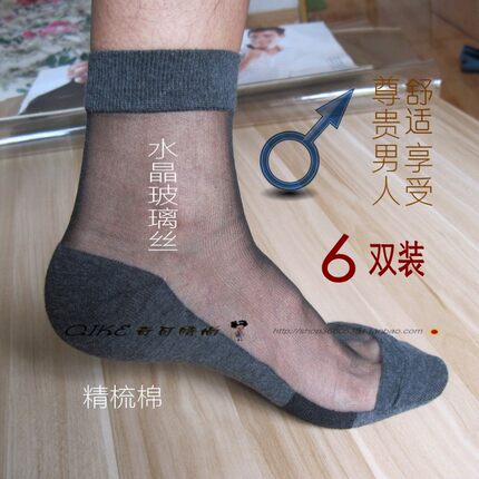 男丝袜夏季超薄款棉底透气防臭耐穿水晶玻璃丝短袜子男中筒6双装