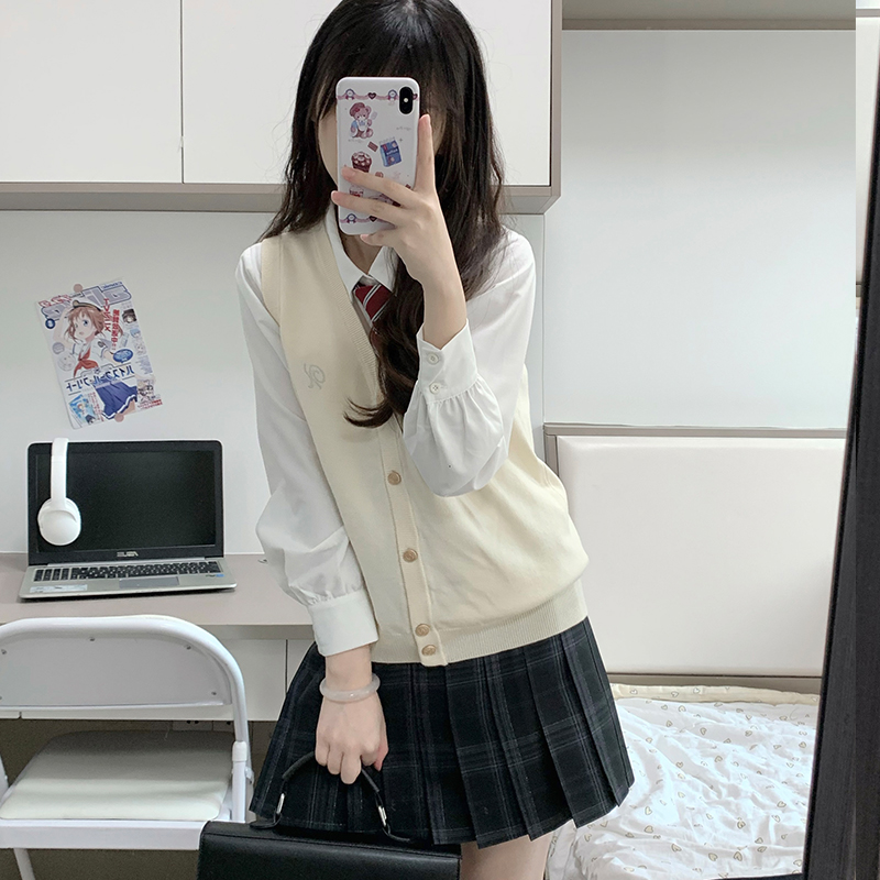 花千猪原创 背心开衫 JK多色毛衣针织外套jk制服刺绣款