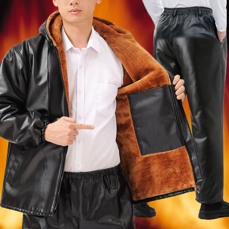 加绒加厚皮衣冬季男士宽松保暖防风皮裤工作服套装大码皮棉衣棉袄