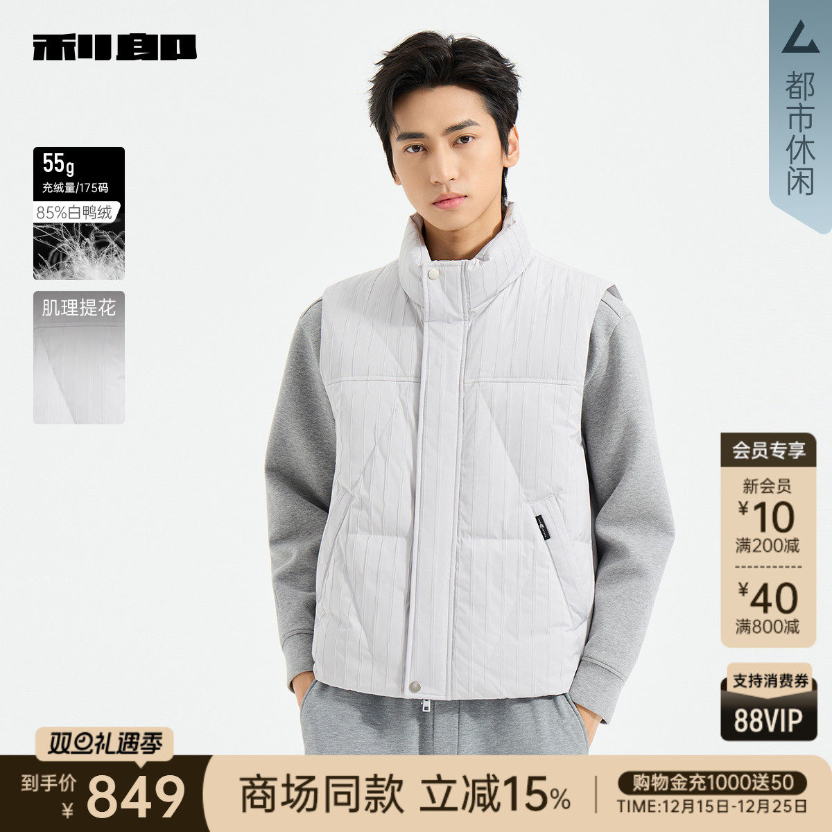 【商场同款】利郎官方立领羽绒马甲男士2025冬季男装25DMJ3501A/2