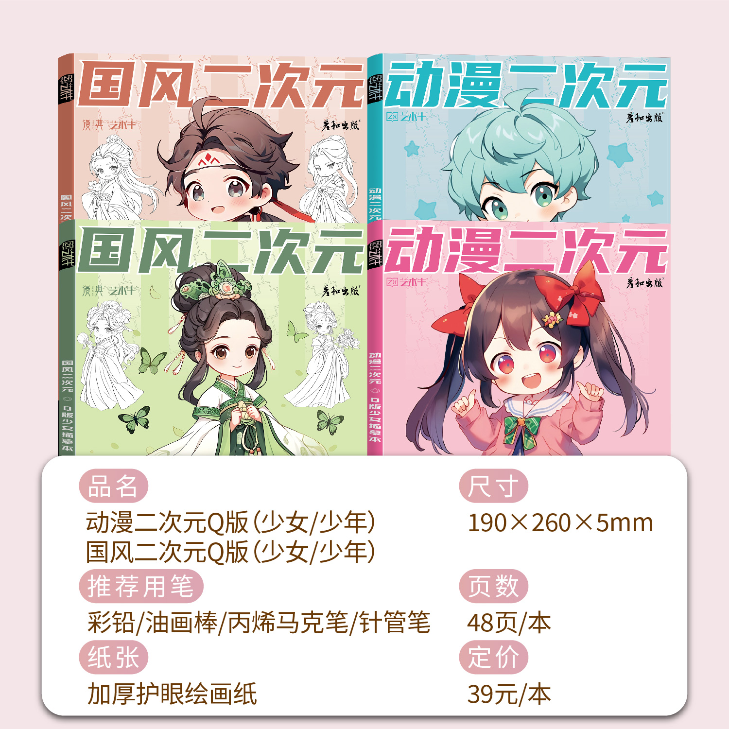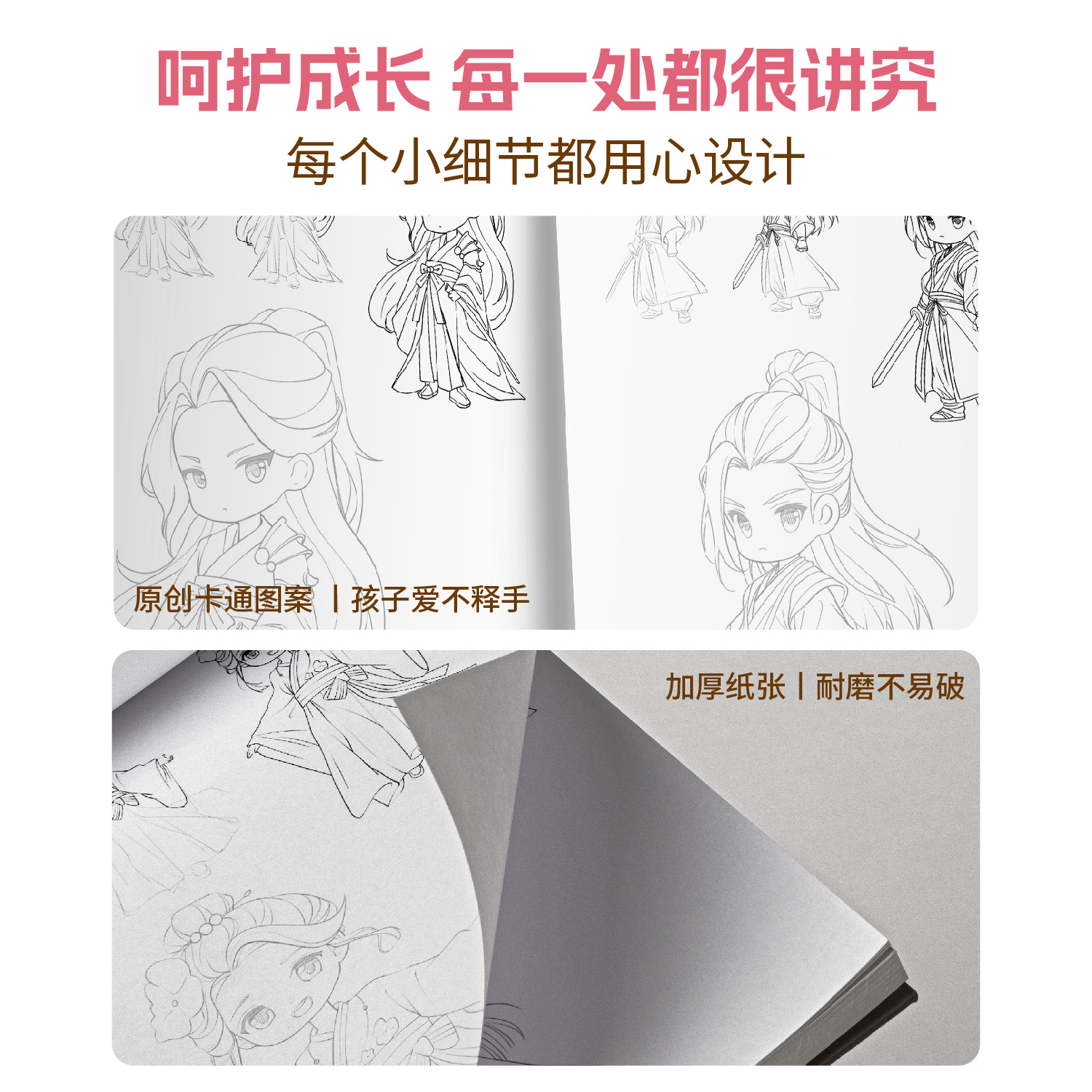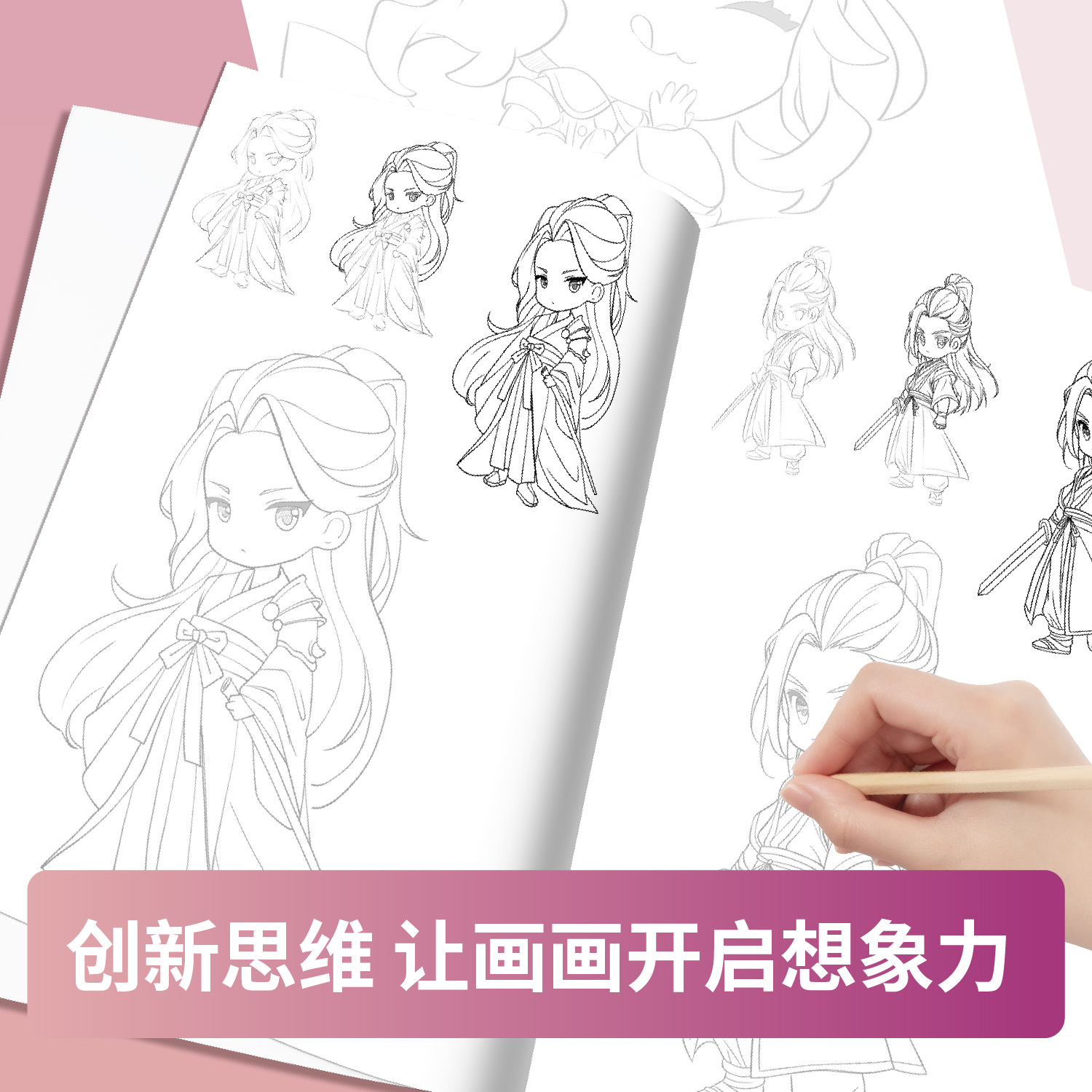 动漫国风二次元Q版少女少年古风漫画动漫人物绘画素材涂色本临摹白描画本插画线稿画册画画儿童涂色本子