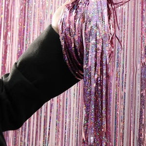 镭射派对流苏雨丝帘儿童生日装饰彩条舞台背景墙布置新年活动彩带