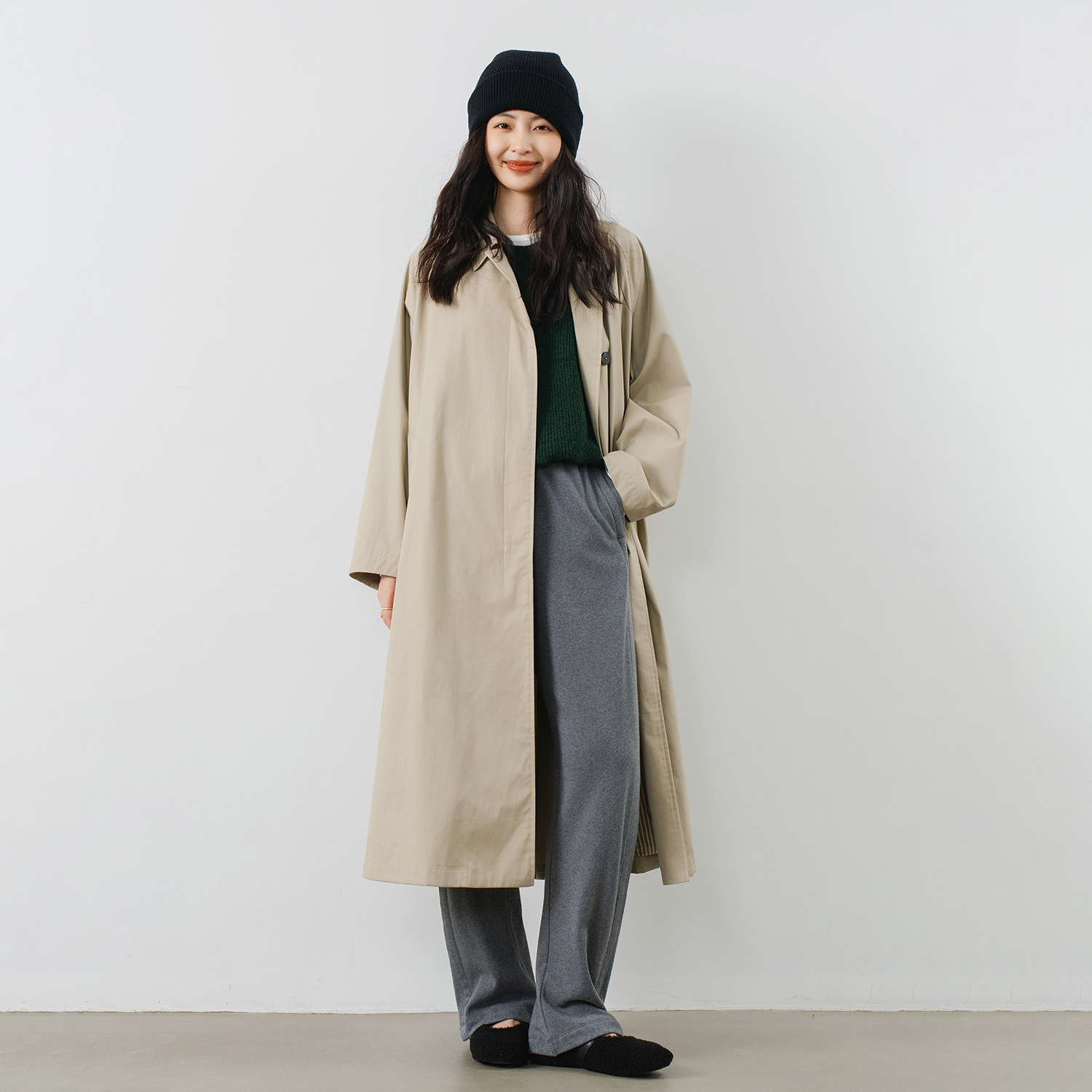梭家|风日笔记|极简风经典版型卡其色棉翻领女士秋季长款风衣
