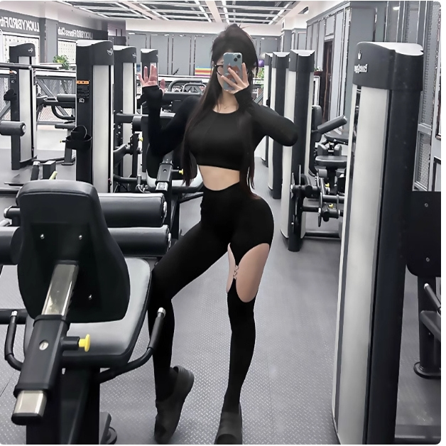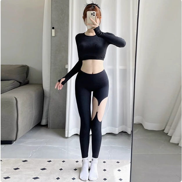 时尚新款瑜伽裤女性感紧身裸感高蜜桃收腹腰运动健身九分镂空长裤