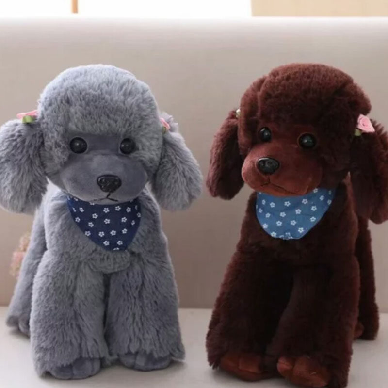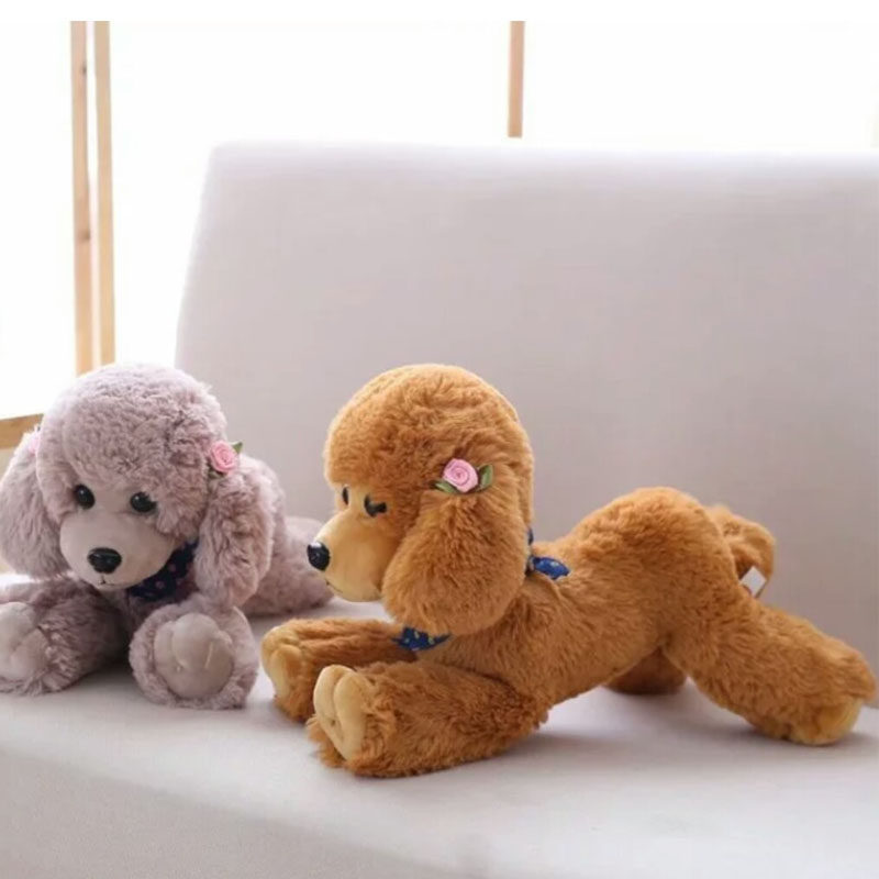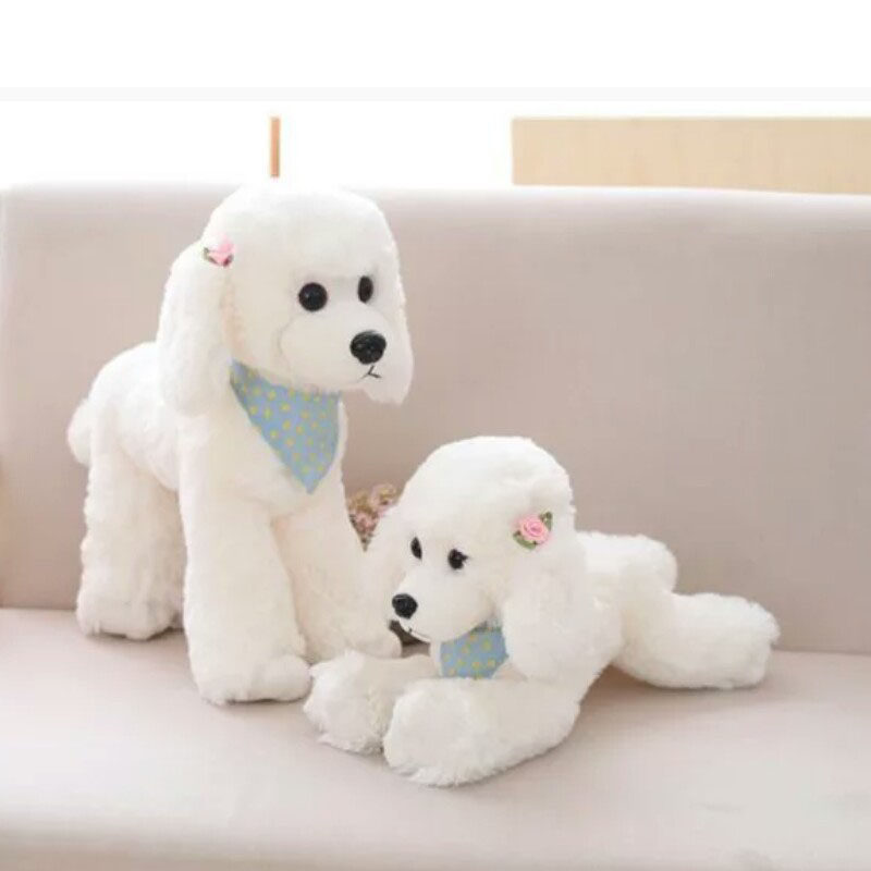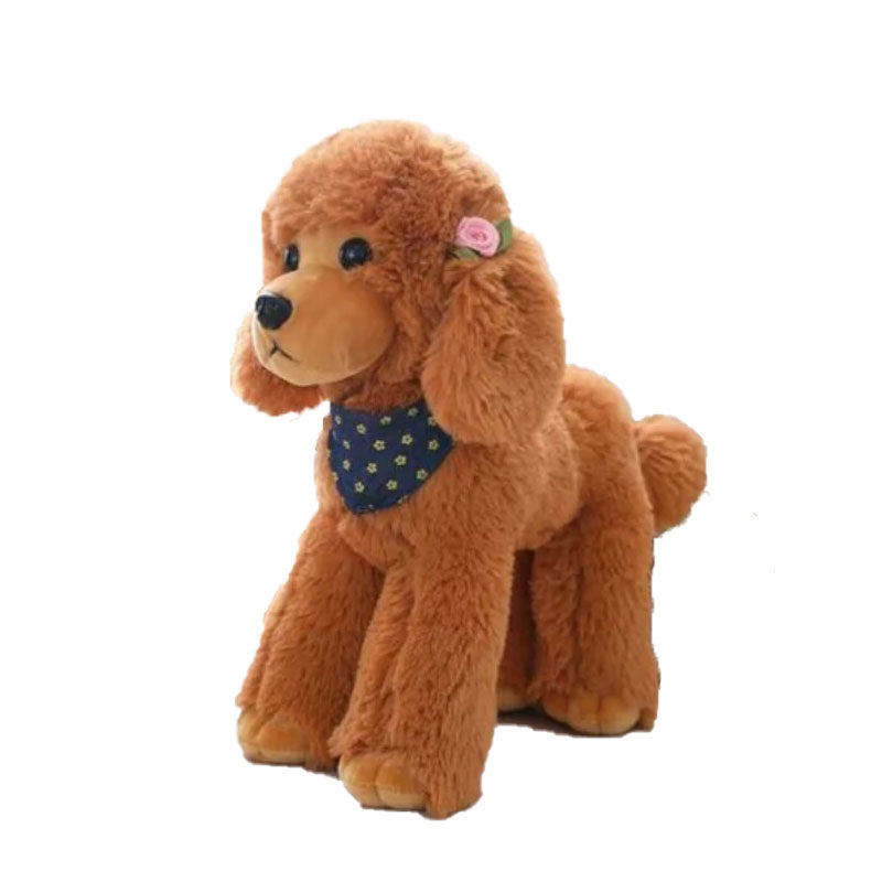 仿真带花站立贵宾犬毛绒玩具贵妇狗白色咖啡色泰迪狗生日礼物盟狗