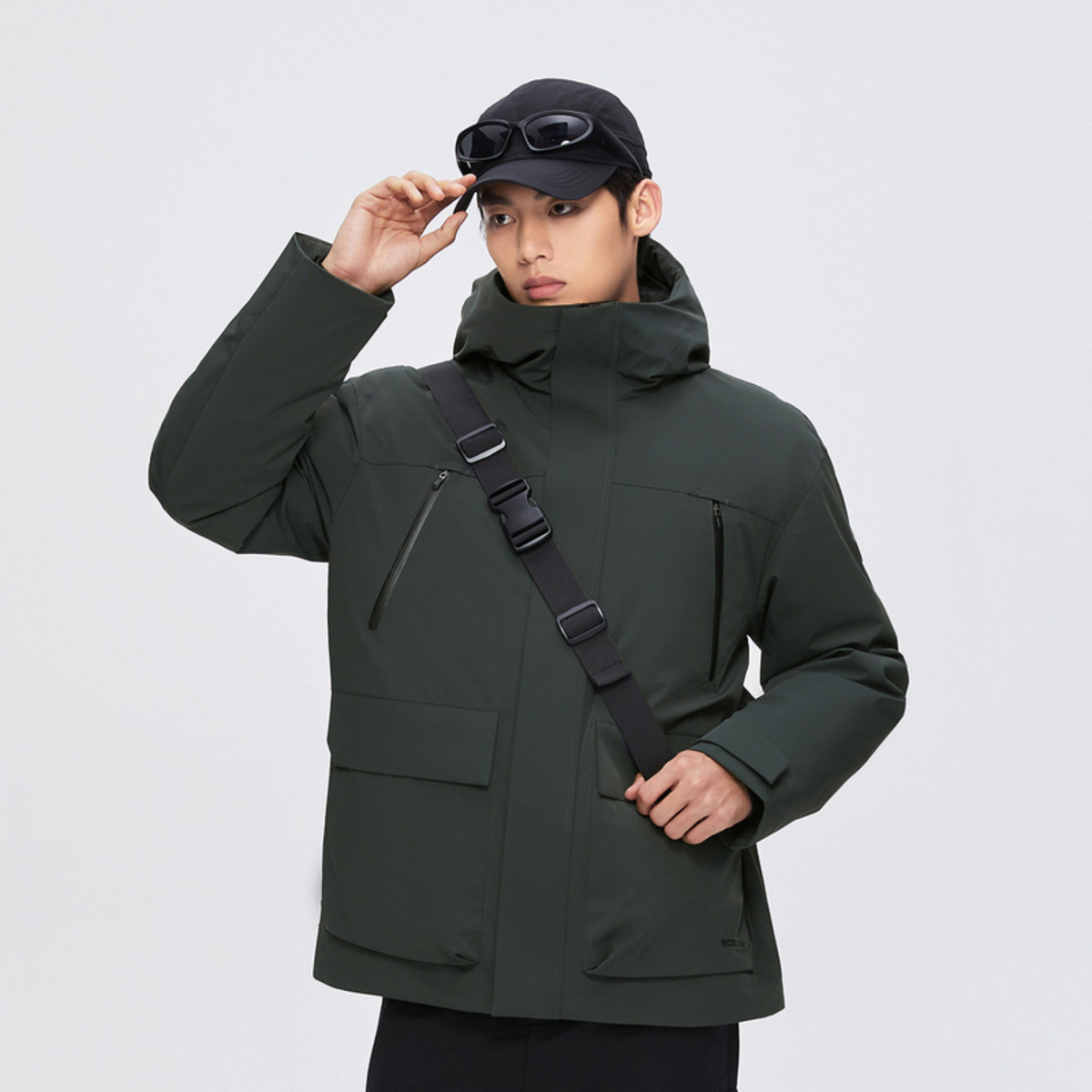 【鹅绒】波司登冬男短款都市时尚轻机能防风防雨连帽保暖厚羽绒服
