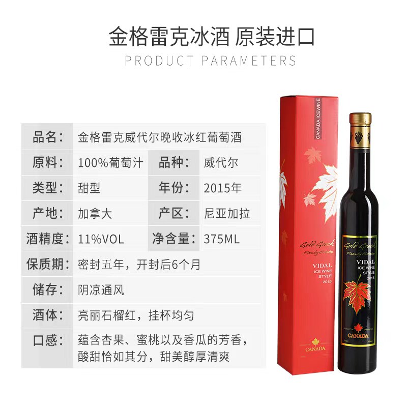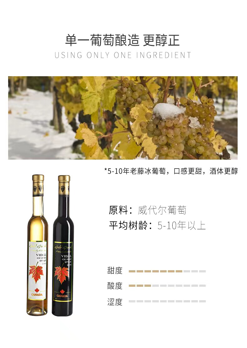 加拿大原瓶进口冰酒金格雷克威代尔晚收冰白冰红甜葡萄女士晚安酒