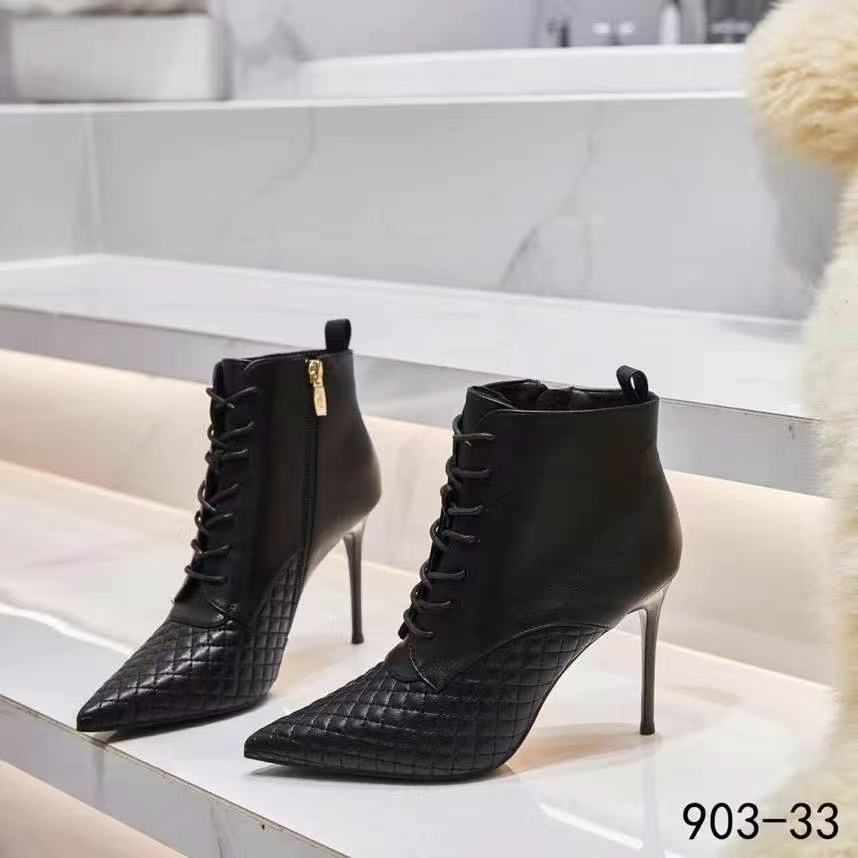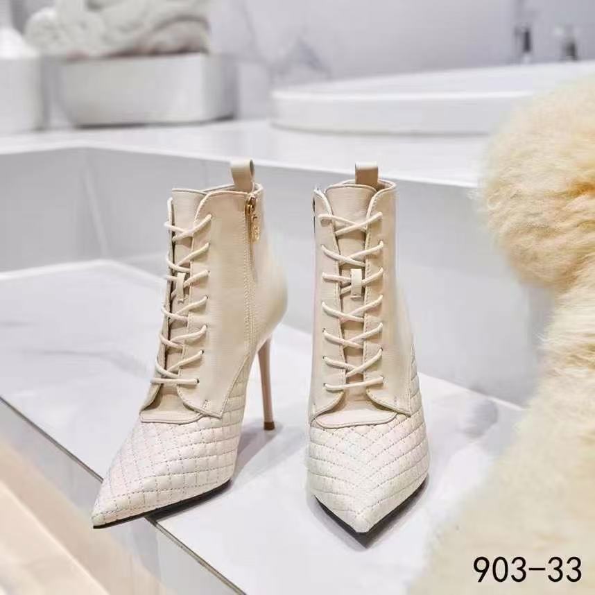 马丁靴尖头侧拉链瘦瘦女靴短靴