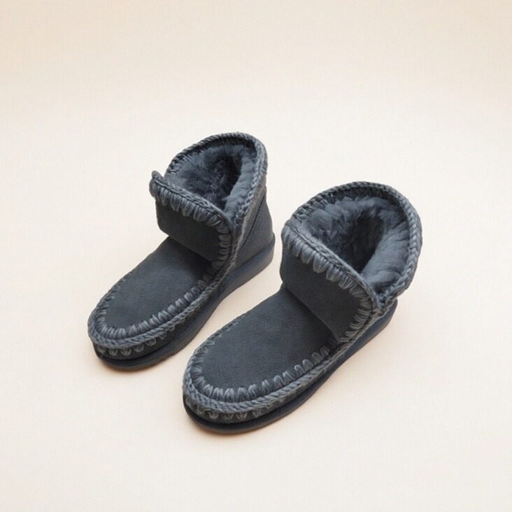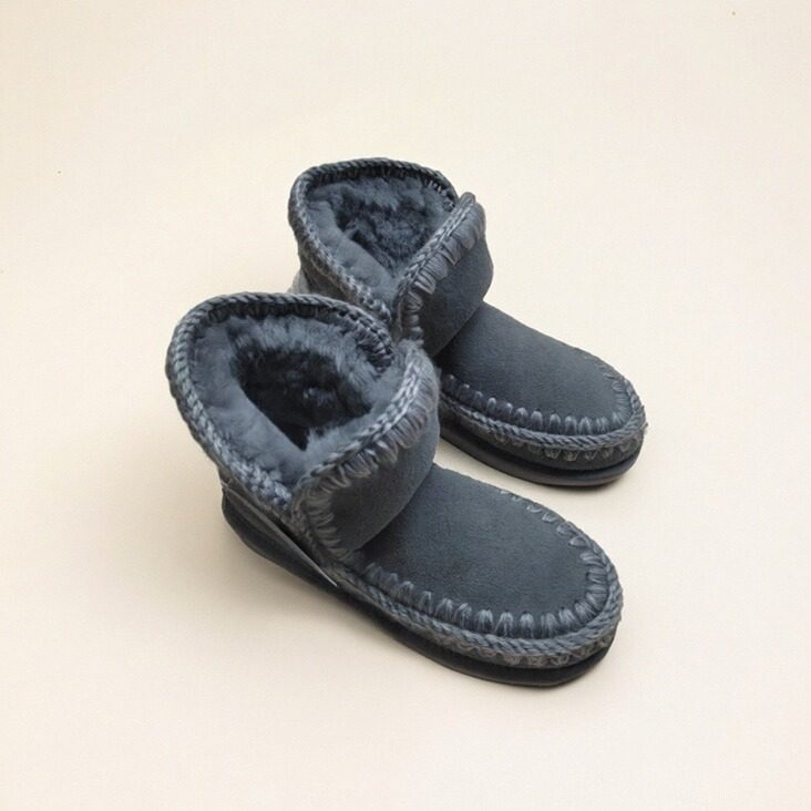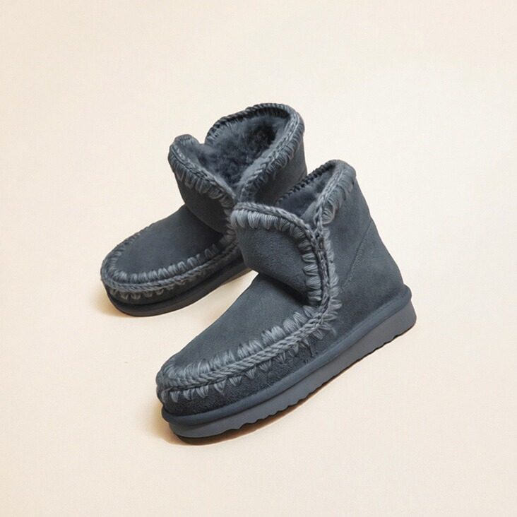 MOU爱斯基摩雪地靴女皮毛一体低帮保暖短靴16cm一脚蹬懒人鞋靴子