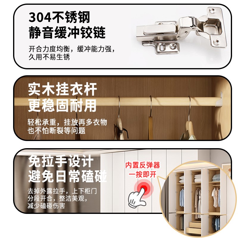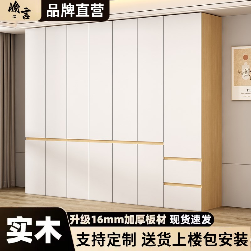 实木衣柜卧室家用柜子简约现代简易大衣橱分段式经济型定制挂衣柜