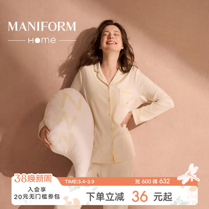 曼妮芬春夏女款丝滑长袖长裤套装女士家居服睡衣睡裤可外穿起居服