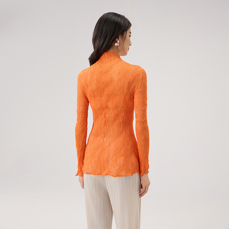 2025褶皱上衣女高级感天丝透明打底衫蕾丝超弹力修身减龄薄款t恤