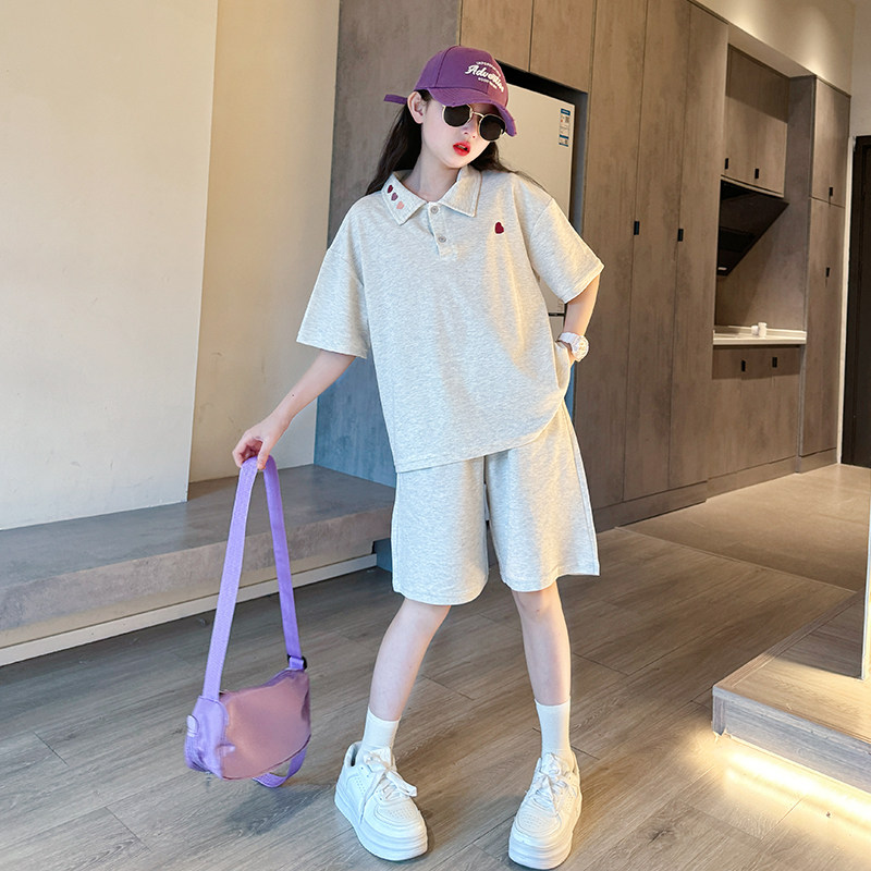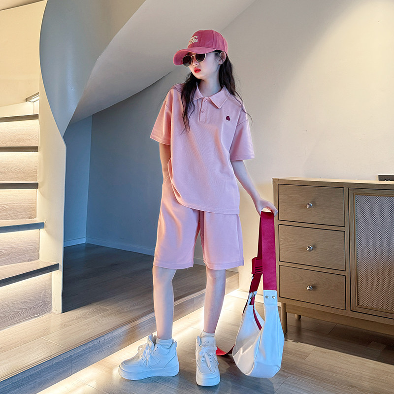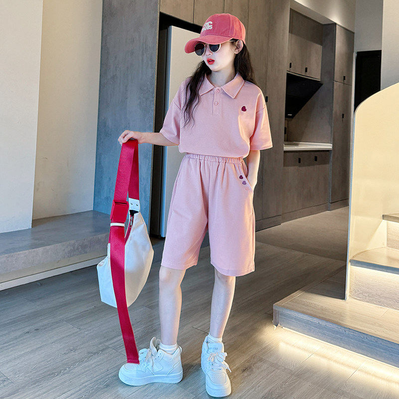 女童夏装套装2025新款儿童学院风短袖t中大童夏季运动短裤两件套