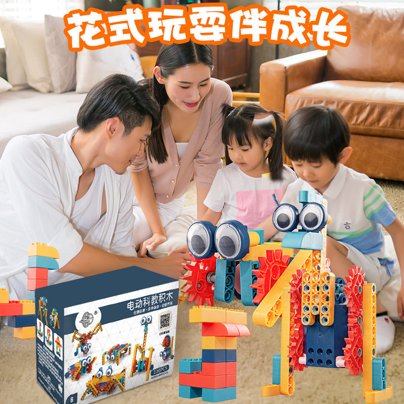 儿童电动科教积木大颗粒拼装编程机器人玩具6岁男孩益智生日礼物