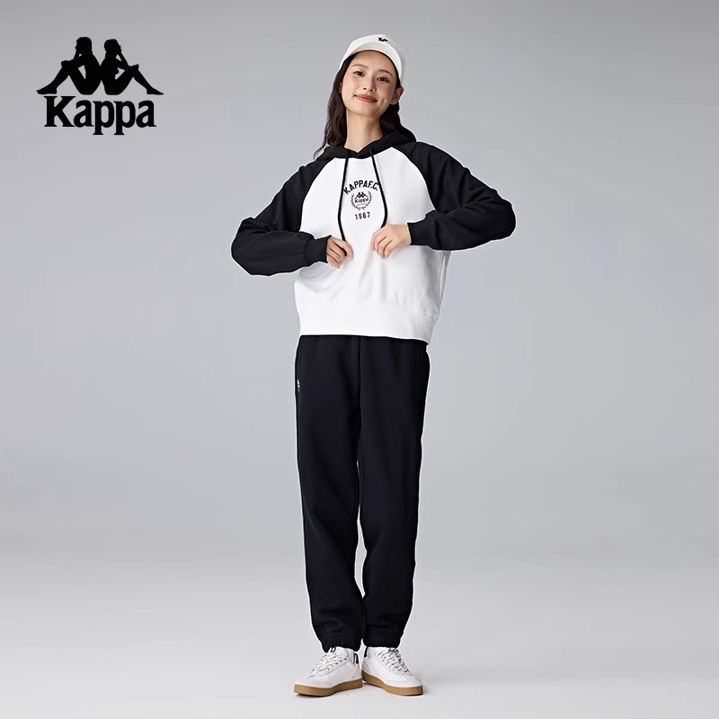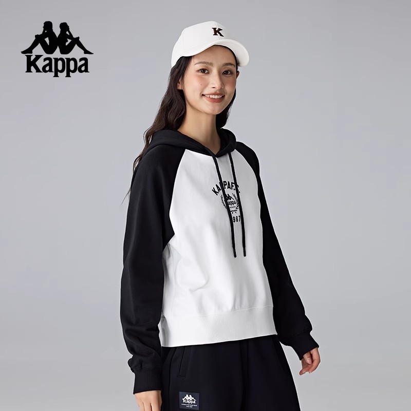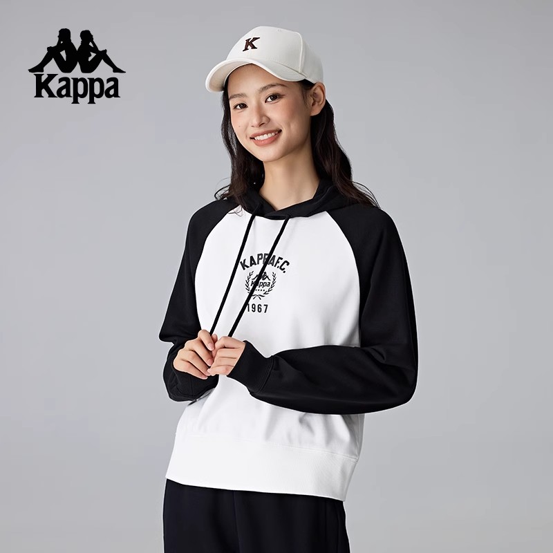 Kappa卡帕背靠背复古撞色针织套头衫2025新款连帽运动卫衣女上衣