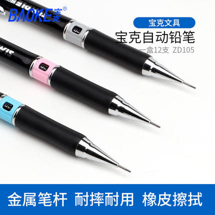 宝克自动铅笔0.7mm0.5HB办公用品素描笔绘画铅笔学生铅笔105黑色