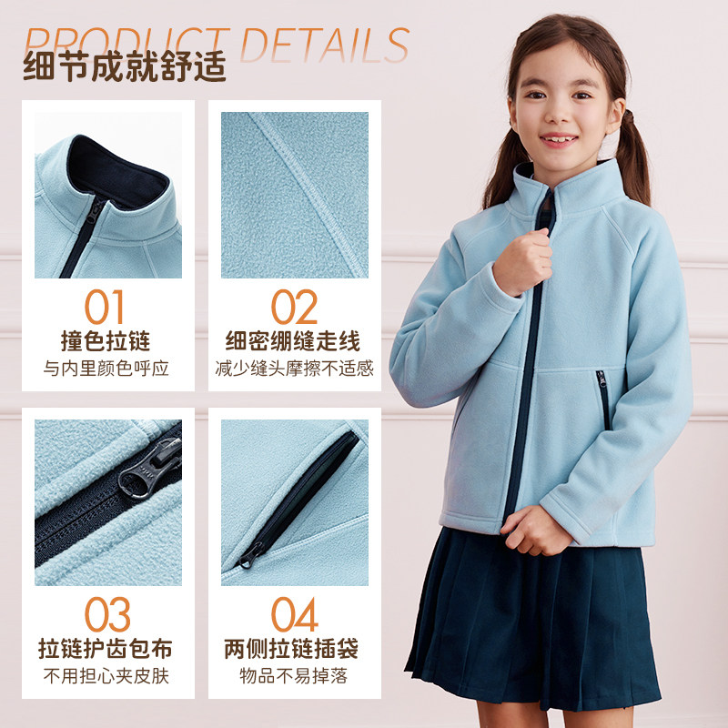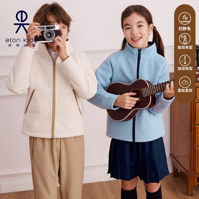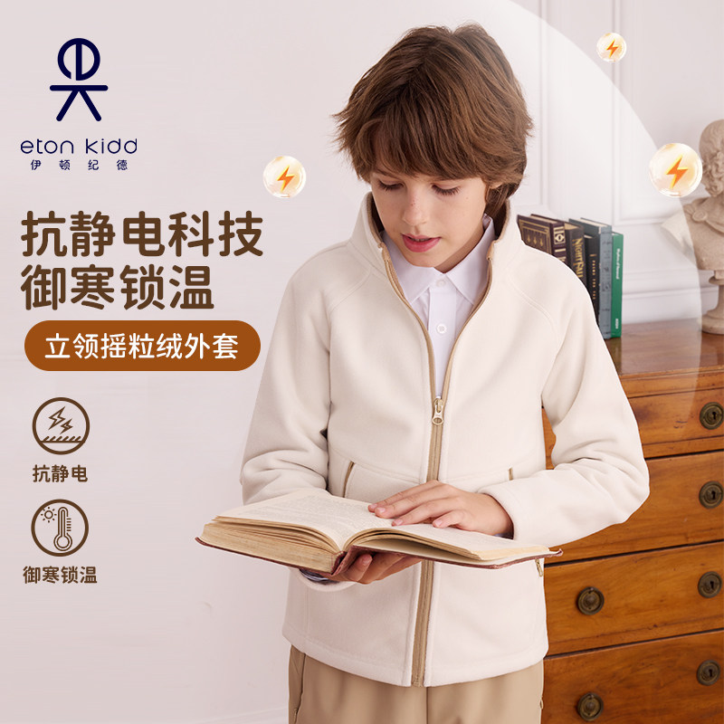 伊顿纪德新款秋冬学院男女童拼色摇粒绒儿童抗静电立领外套25R908