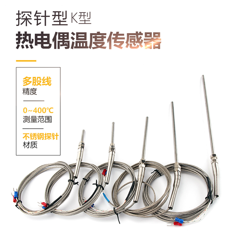 探针式测温线k型热电偶PT100高精度感应感温探头温度传感器