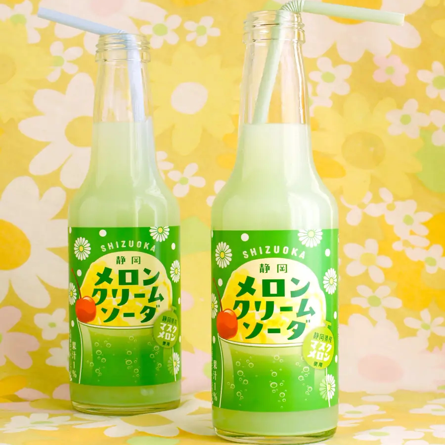 日本进口木村静冈哈密瓜奶油汽水夏日玻璃瓶装碳酸饮料250ml