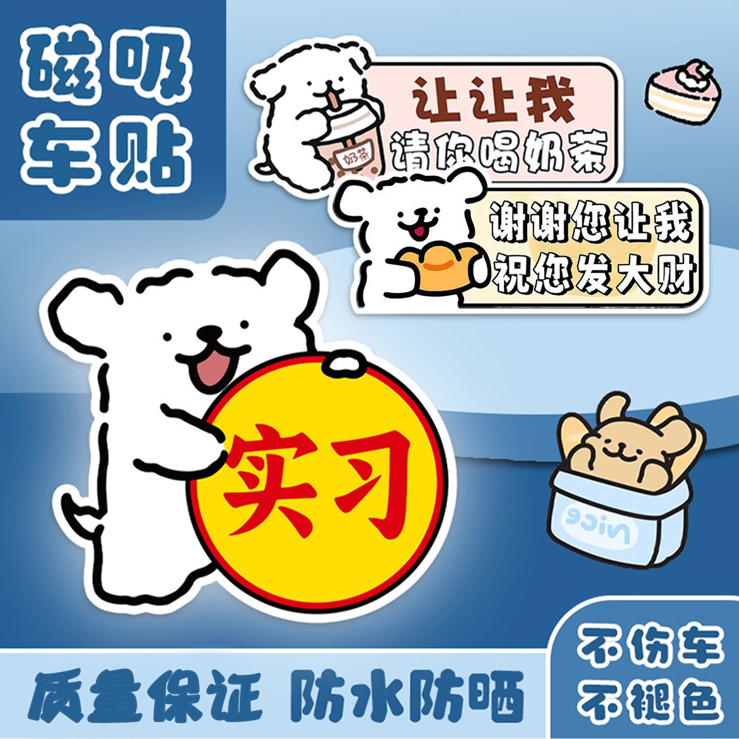 新手上路车贴线条狗创意车贴磁性搞笑车尾汽车贴纸可爱女司机标志