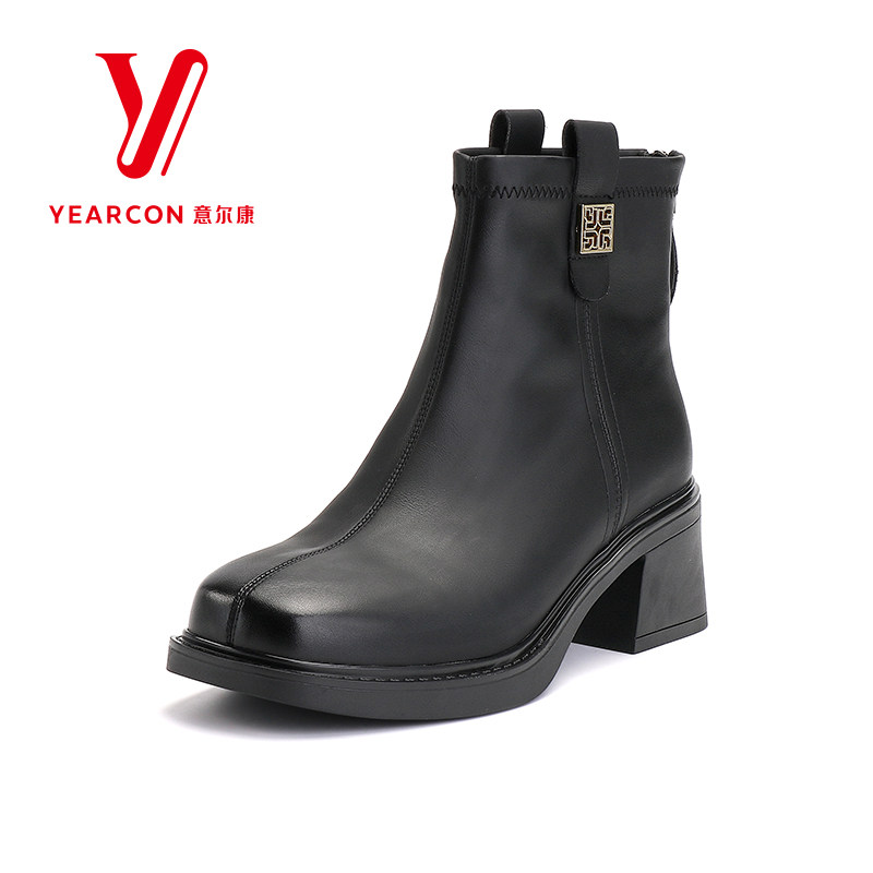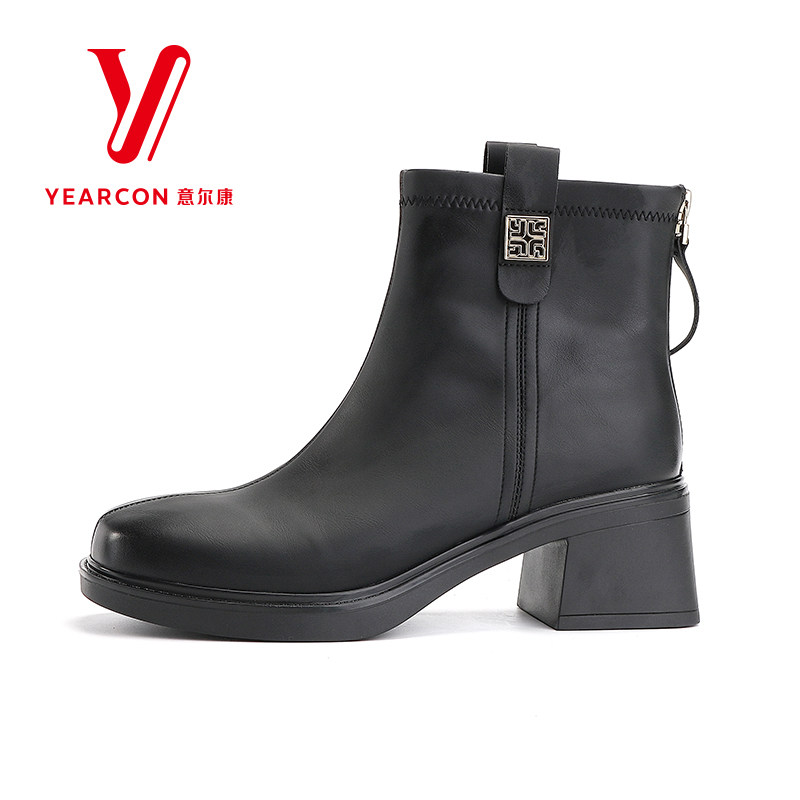 意尔康女靴2025新款秋季短靴女粗跟高跟时装单靴通勤短筒靴子软底