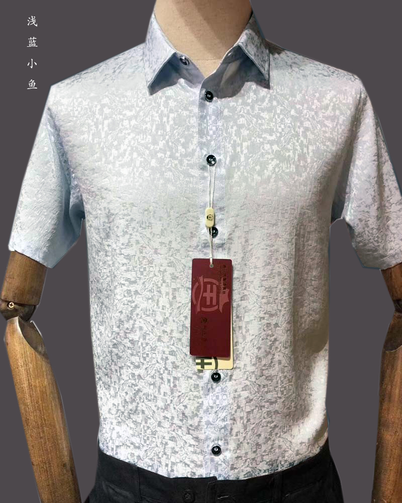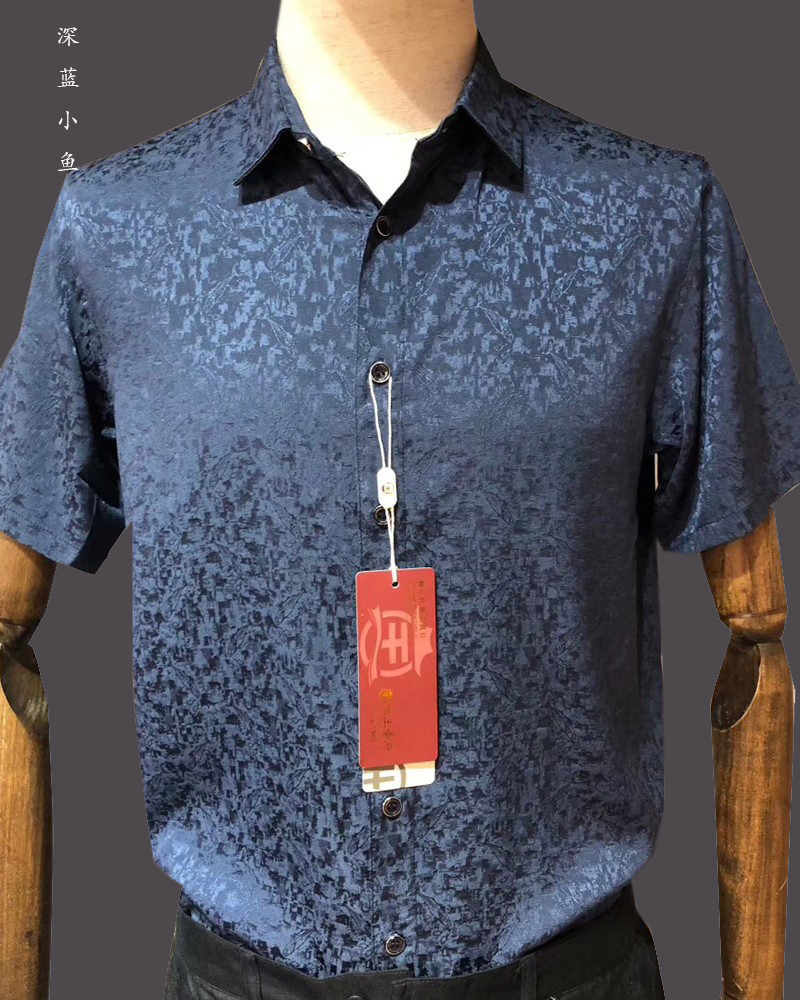 杭州丝绸 真丝男装 中年桑蚕丝弹力缎短袖衬衫 半袖衬衣 父亲礼物