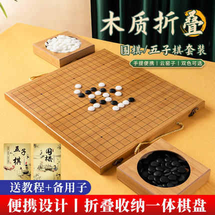 围棋棋盘儿童初学套装大人玉石五子棋云子学生19路专用折叠棋盘