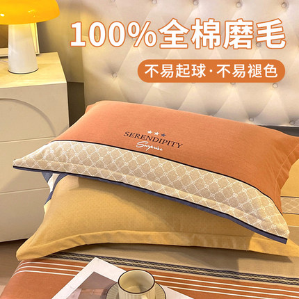 全棉磨毛枕套一对装加厚纯棉枕头套48x74cm秋冬季学生宿舍枕芯套