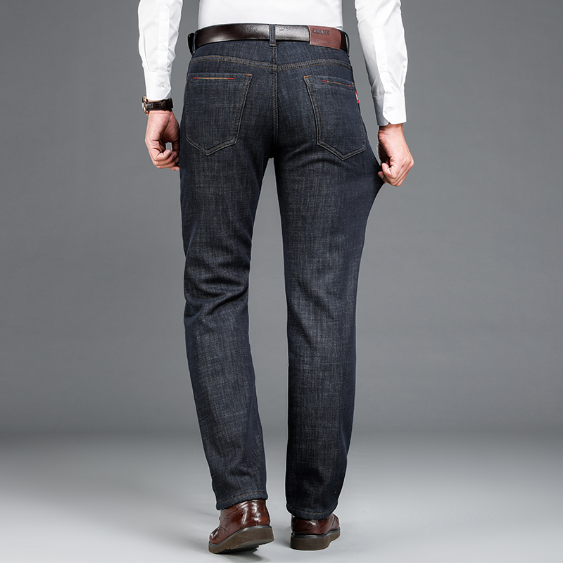 冬季羊羔绒牛仔裤男加绒加厚中年保暖男裤宽松直筒爸爸一体绒长裤